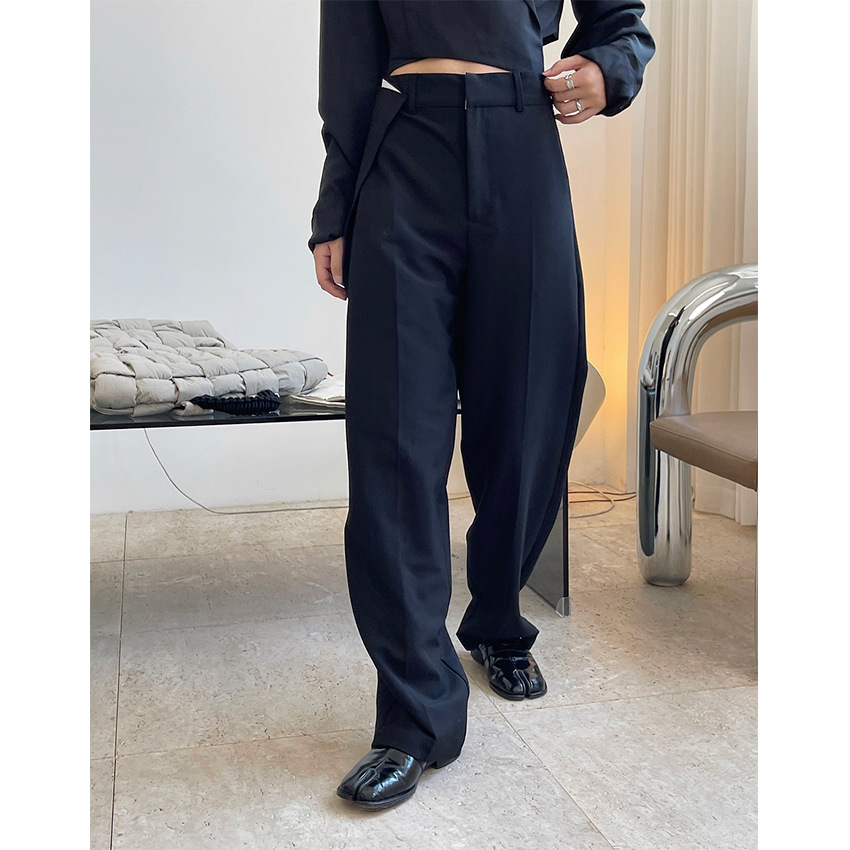 "개인 스타일" 이른 가을 새로운 한국 스타일 디자이너 스타일 접이식 허리 스트레이트 바지 여성용 느슨한 슬리밍 바지스토어 가기