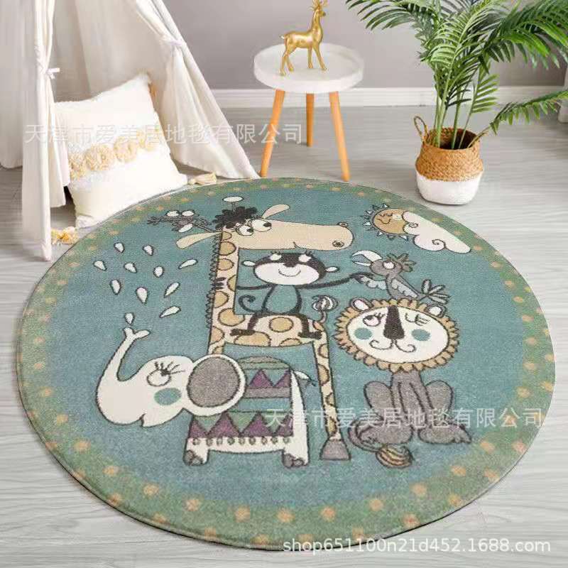 국경을 넘는 인기 만화 소녀 어린이방 원형 바닥 매트 거실 침실 침대 옆 두꺼운 바구니 의자 카펫 크리스탈