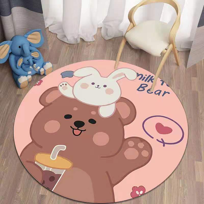 국경을 넘는 인기 만화 소녀 어린이방 원형 바닥 매트 거실 침실 침대 옆 두꺼운 바구니 의자 카펫 크리스탈스토어 가기