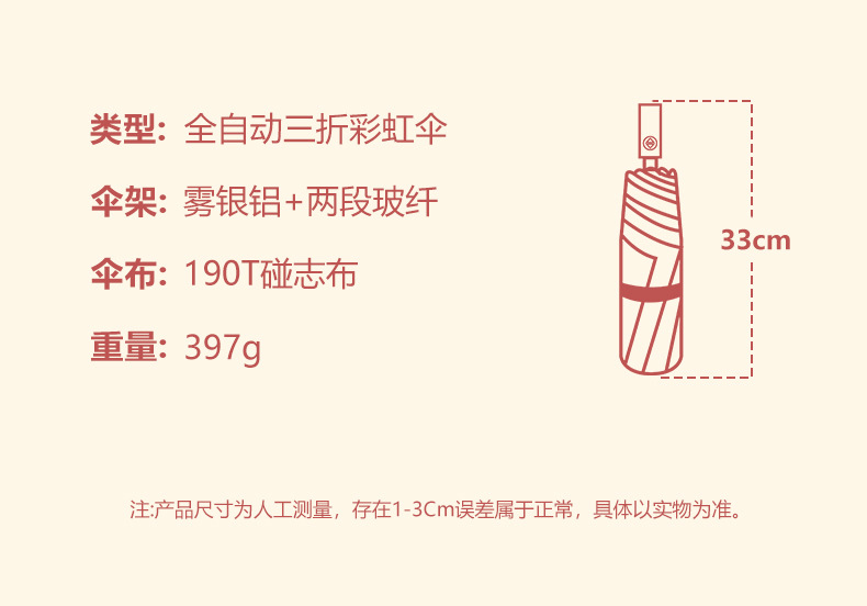 • 21 인치 8K 3 중 자동 개방 싱글 레이어 무지개 우산