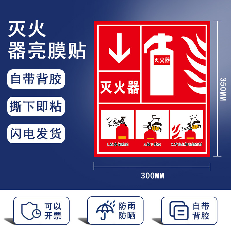 • 300 및 350 용 밝은 필름 스티커가있는 소화기의 장소