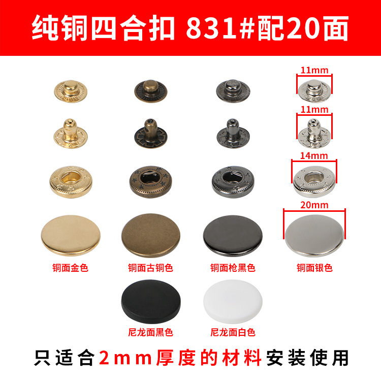 공장 사용자 정의 버튼 금속 구리 스냅 버튼 831/633/655 다운 재킷 버튼 스냅 버튼 숨겨진 버튼