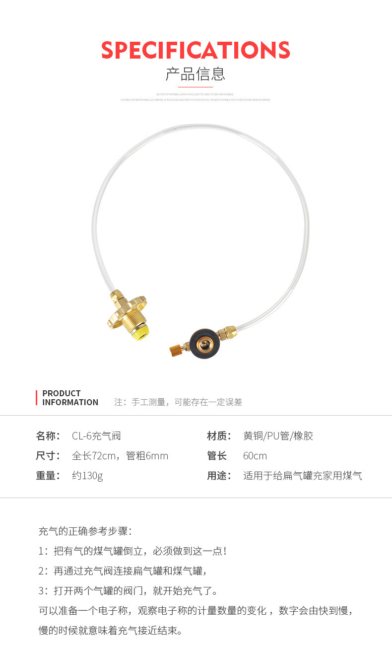 스미 야외 스토브 헤드 플랫 가스 탱크 충전 밸브 어댑터 캠핑 가스 탱크 충전 투명 튜브 가스 충전스토어 가기