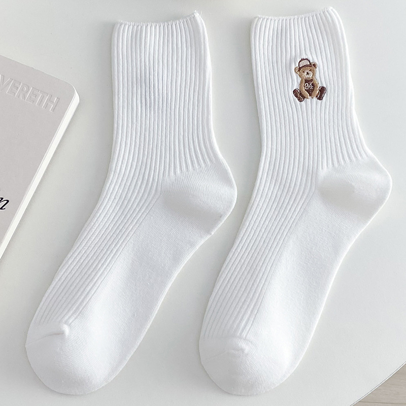 새로운 스타일 지구 색 양말 한국 여성 양말 유행 면 봄과 가을 귀여운 일본 곰 스택 여성을위한 중간 길이 양말