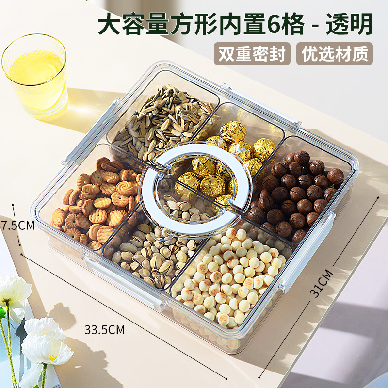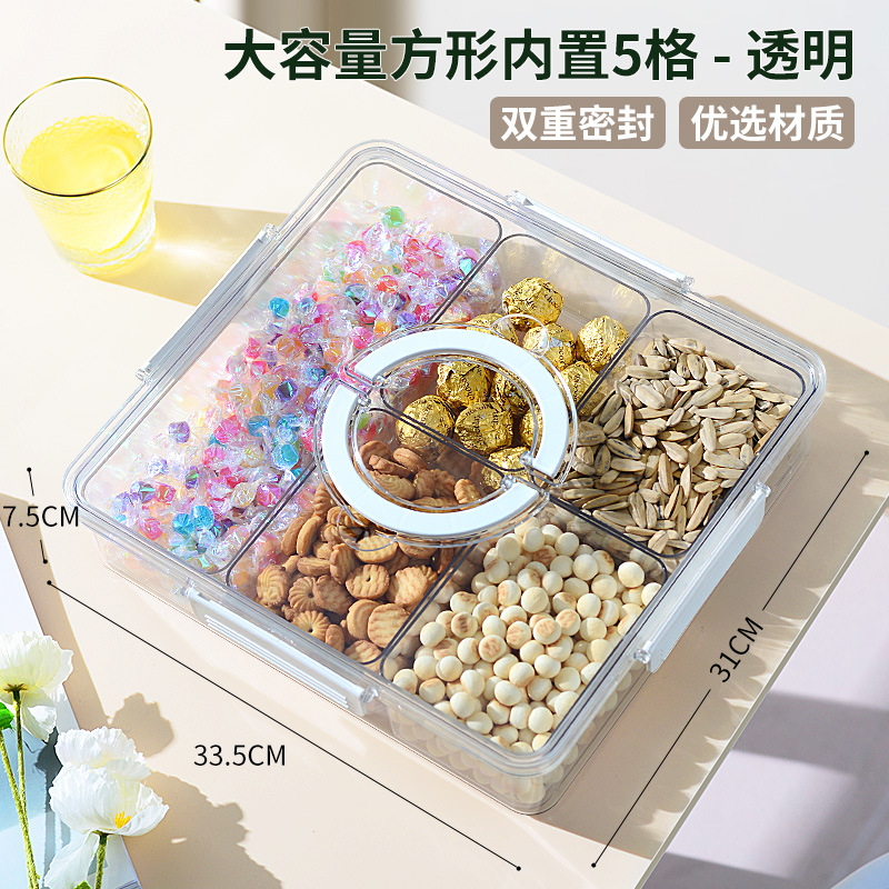 가벼운 고급 과일 트레이 가정용 거실 뚜껑 회전 간식 말린 과일 트레이 웨딩 캔디 멜론 하위 그리드 보관 상자