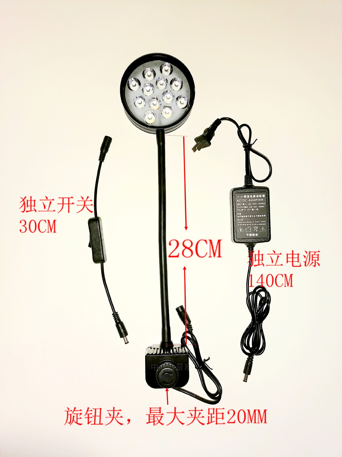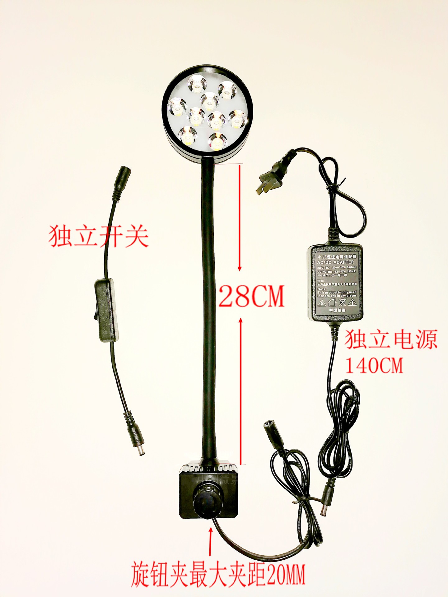 • 전체 스펙트럼 흰색 9W 높이 조절 가능한 흰색베이스 28*28 직선로드 60 조정 가능한 팔꿈치 20