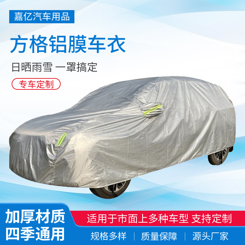 자동차 면 자외선 차단제 방수 방진 사계절 유니버설 차양 자동차 커버 두꺼운 서리 커버 격자 무늬 알루미늄 코트스토어 가기
