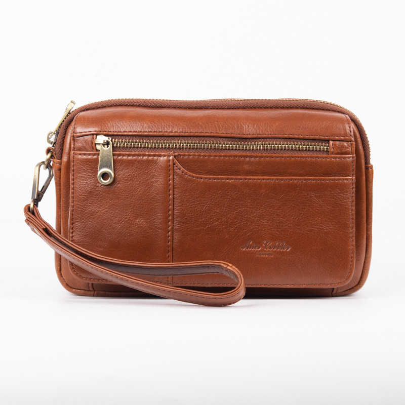 국경을 넘는 인기 남성용 천연 가죽 클러치백 다기능 가로형 비즈니스 캐주얼 핸드백 손목 가방 제조업체 도매스토어 가기