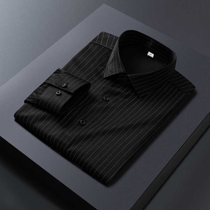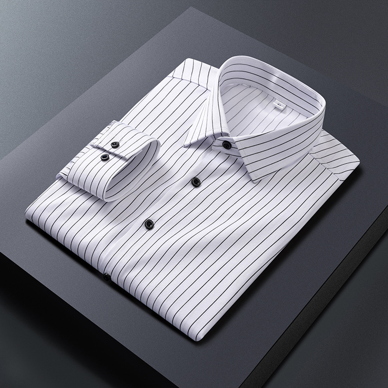 2023 여름 얇은 청소년 비즈니스 스트레치 그레이 스트라이프 슬림핏 한국 스타일 라펠 캐주얼 남성 긴팔 셔츠스토어 가기