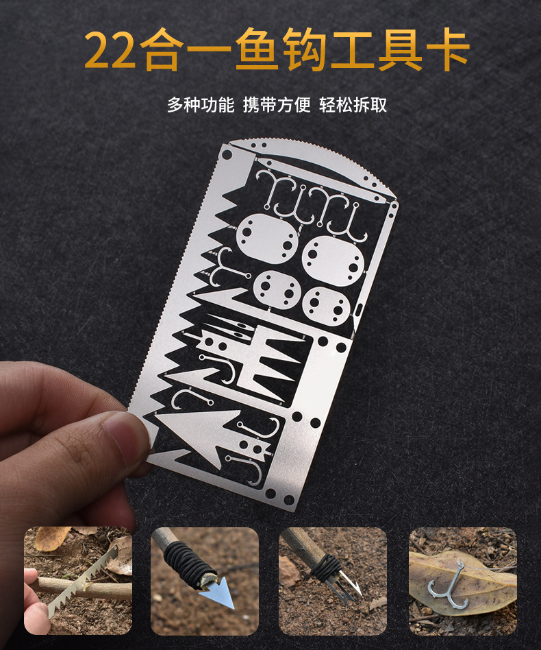 Sumi 야외 캠핑 용품 다기능 생존 도구 낚시 후크 카드 휴대용 도구 카드 22-in-one