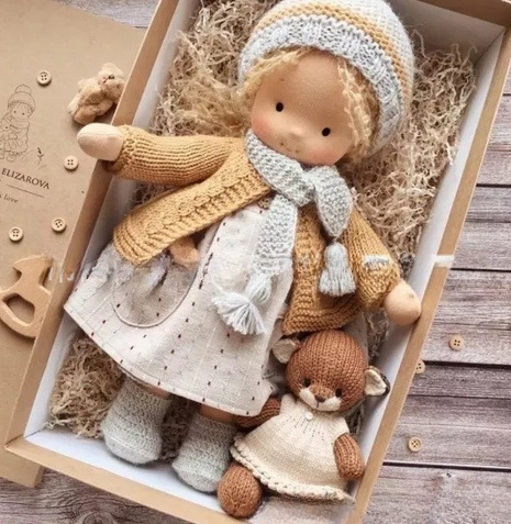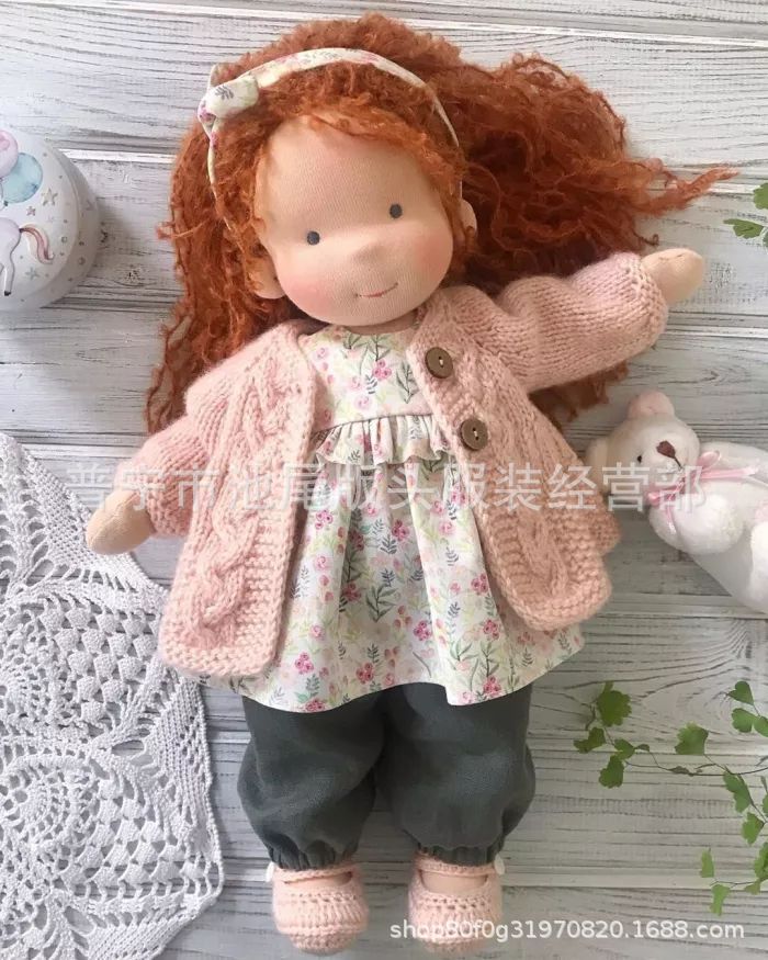 整个成品 (娃娃身子+裙子+头发+鞋子+围巾+开衫+帽子)