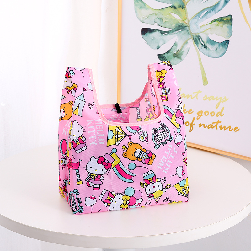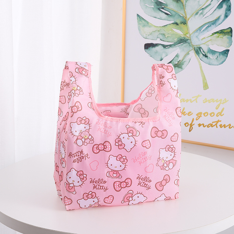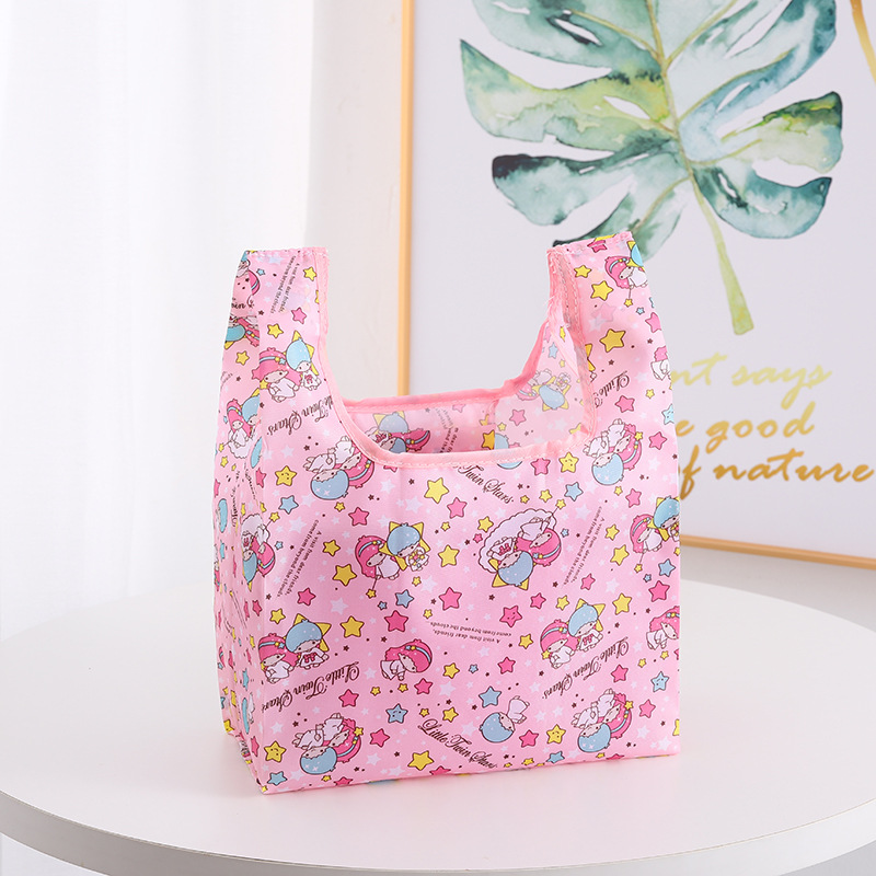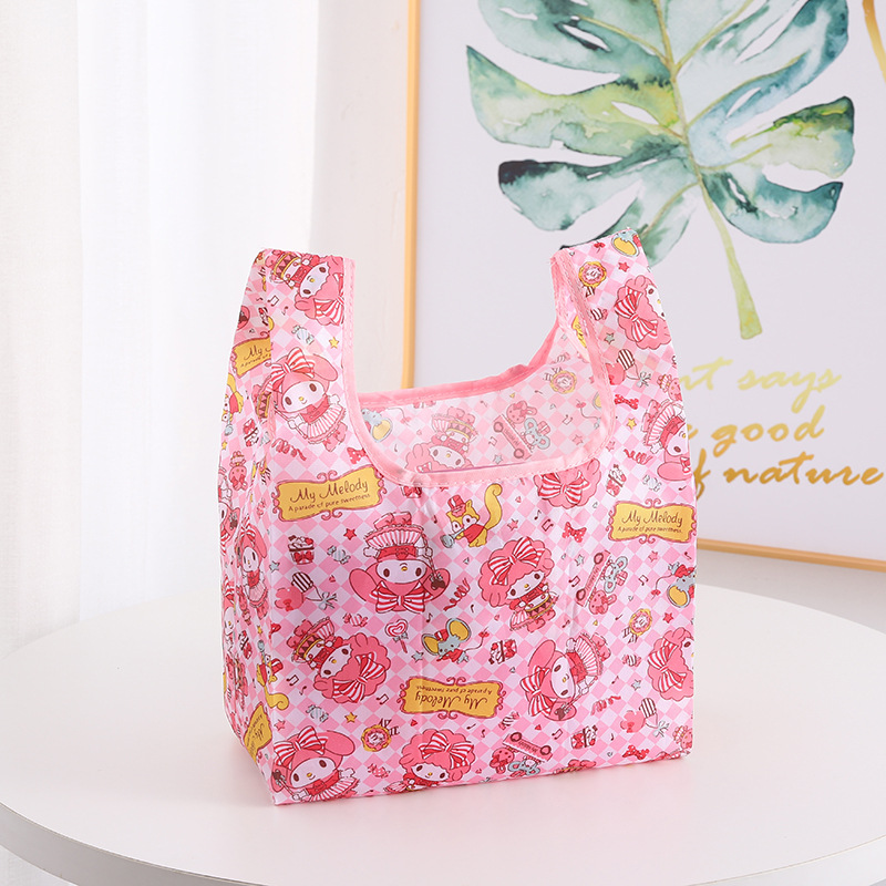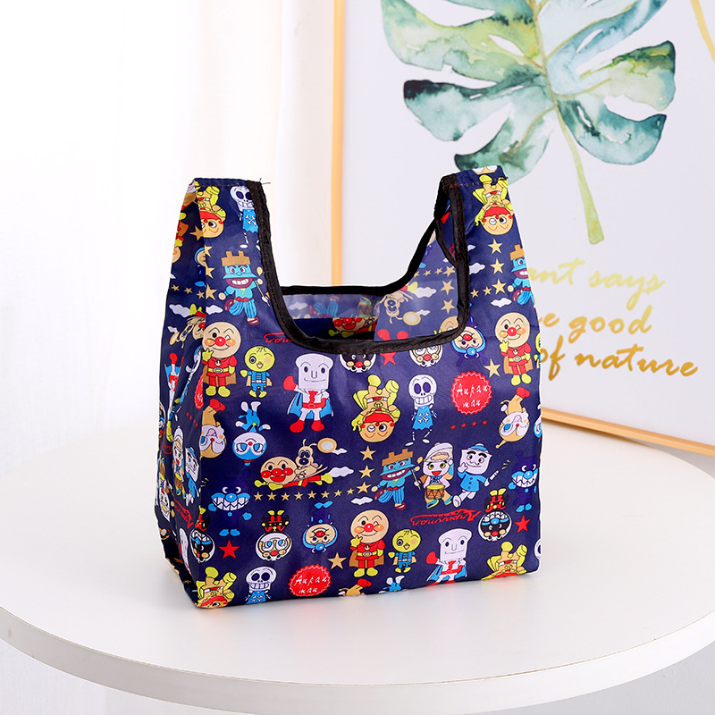 만화 스몰 사이즈 귀여운 인형 패턴 접이식 간단한 휴대용 쇼핑백 휴대용 미니 에코 백스토어 가기