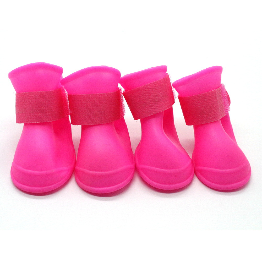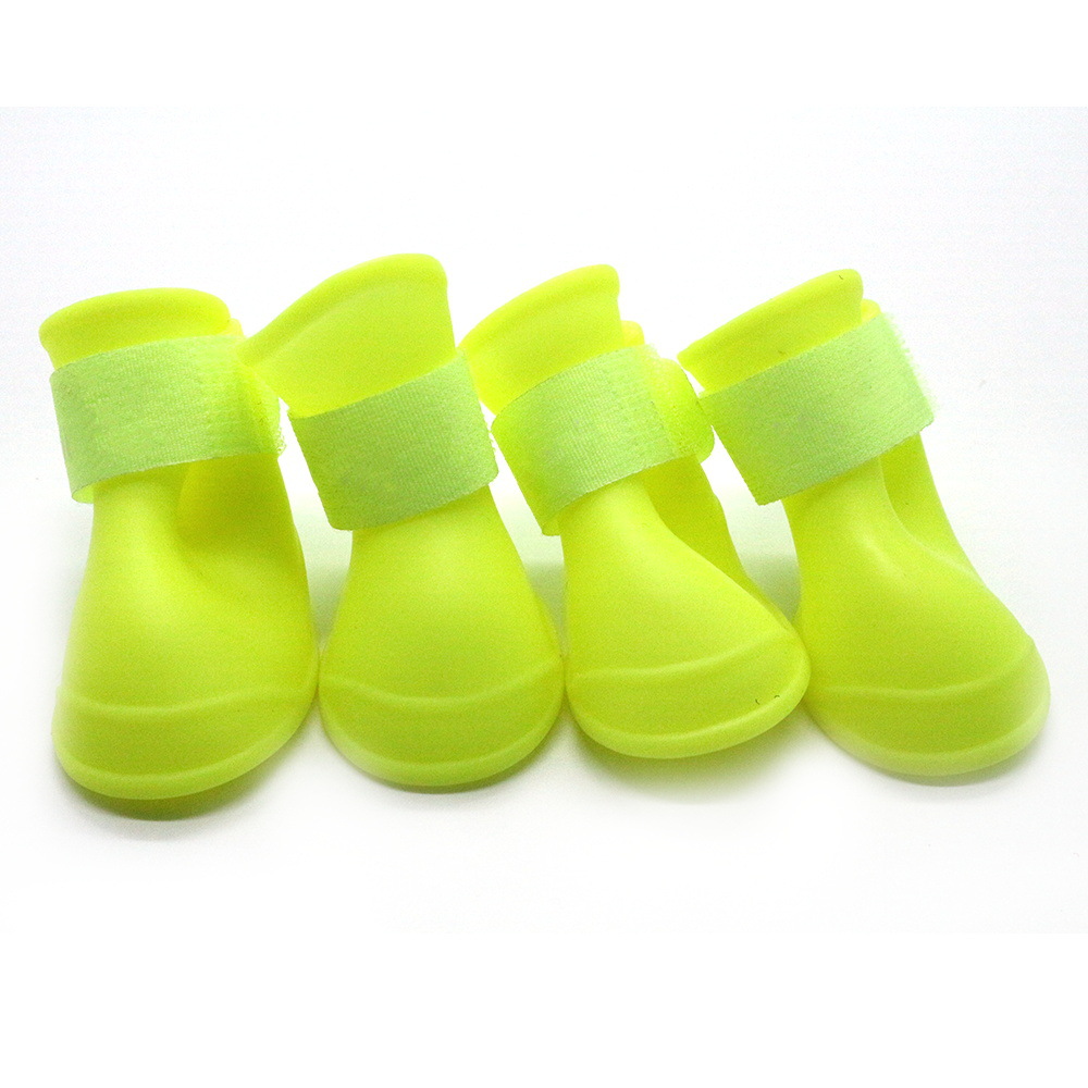 재고 크로스 보더 애완 동물 용품 강아지 사탕 색상 미끄럼 방지 방수 실리콘 장화 발톱 세트 4 종 세트
