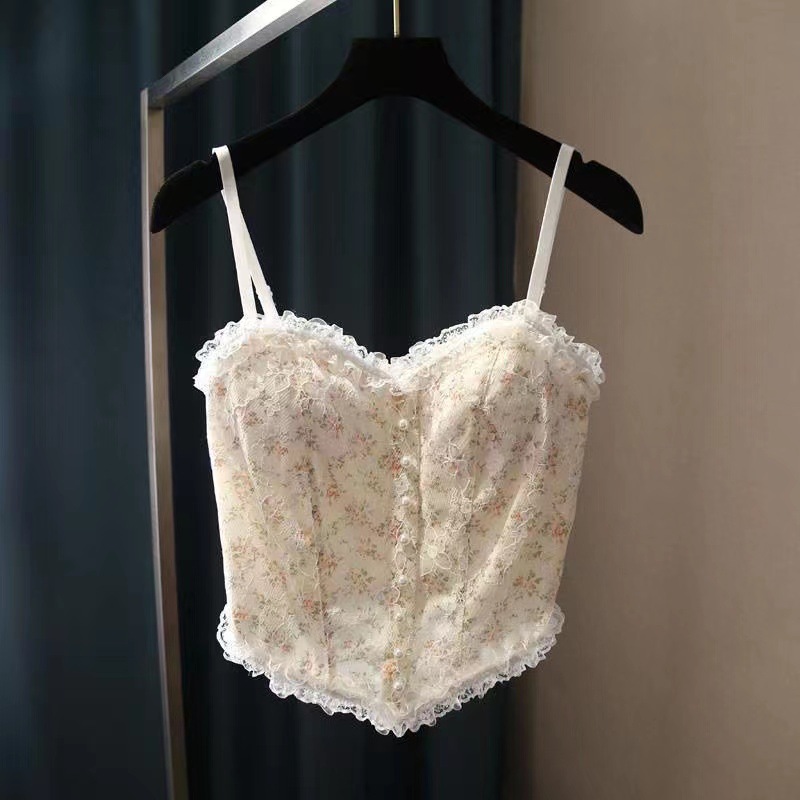 캐미솔 여성의 가을과 겨울 새로운 우아한 레이스 디자인 감각 끈이없는 바닥 가슴 랩 섹시한 겉옷 내부 탑스토어 가기