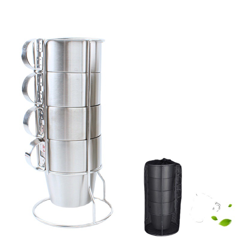 수미 야외 캠핑 식기 전신 304 스테인레스 커피 컵 세트 2 층 물컵 바베큐 4 피스 컵