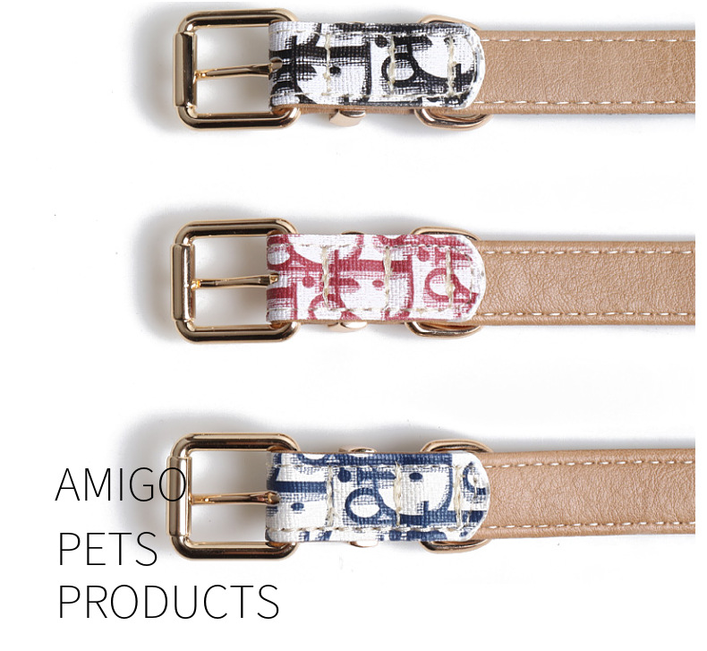 Aminger 새로운 애완 동물 목걸이 대형 PAI 시리즈 개 목걸이 장로 PU 금속 버클 개 목걸이 가죽 끈스토어 가기