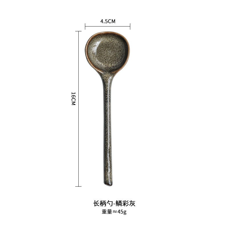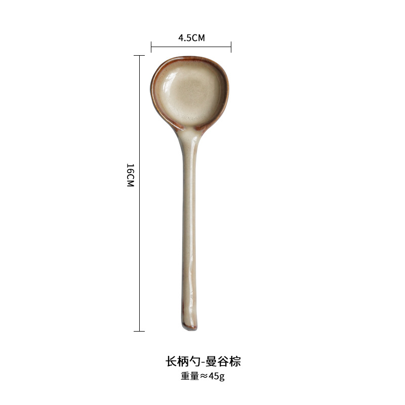 작은 수프 스푼 가정용 창조적 인 가마 변경 거친 도자기 긴 손잡이 믹싱 스푼 쌀 스푼 디저트 스푼 죽 숟가락 크로스 보더스토어 가기