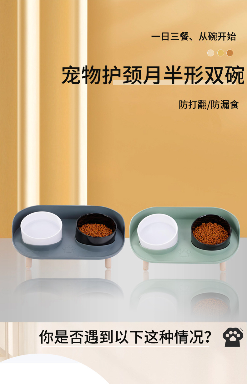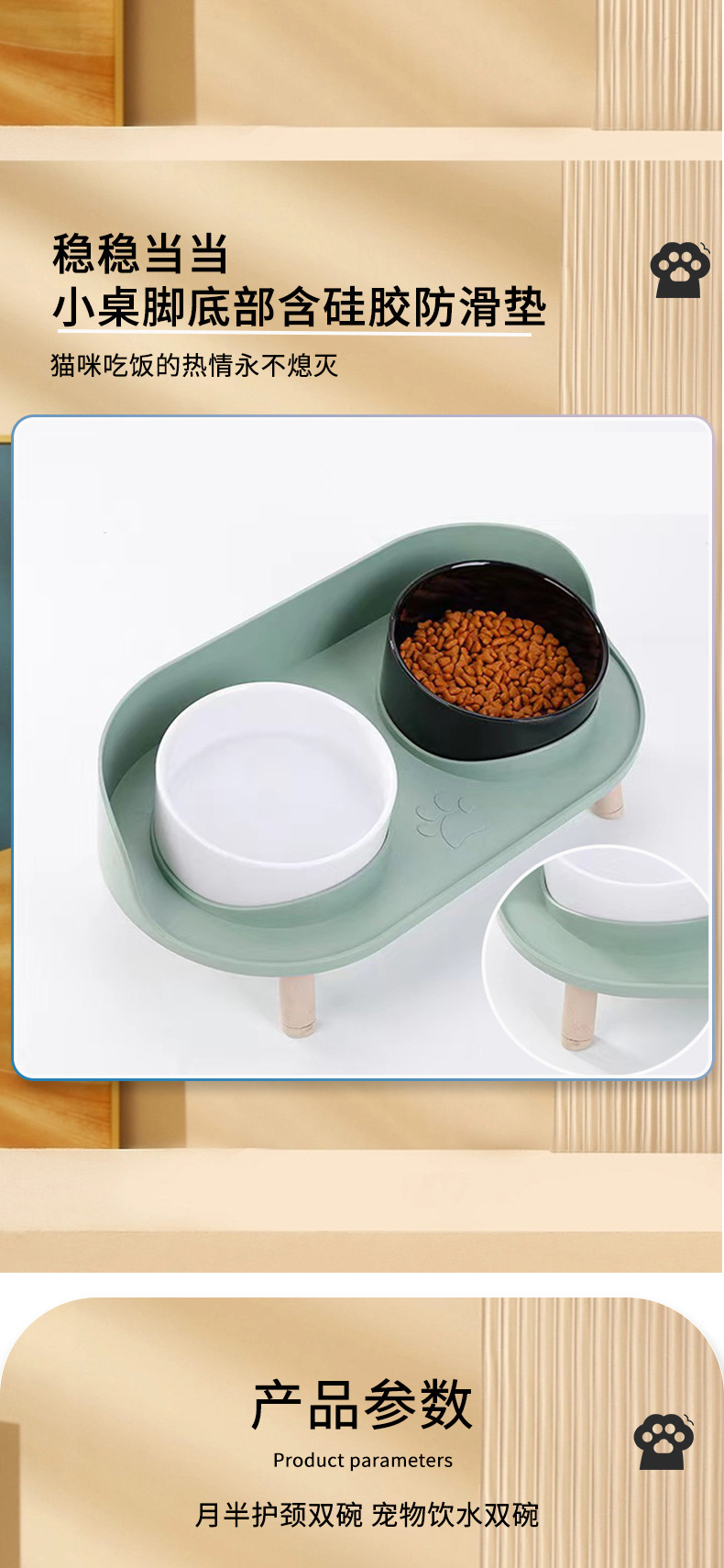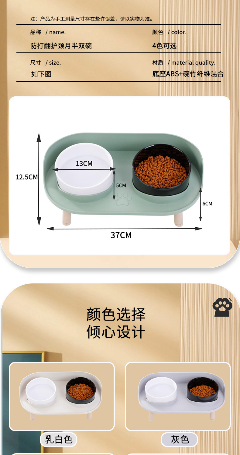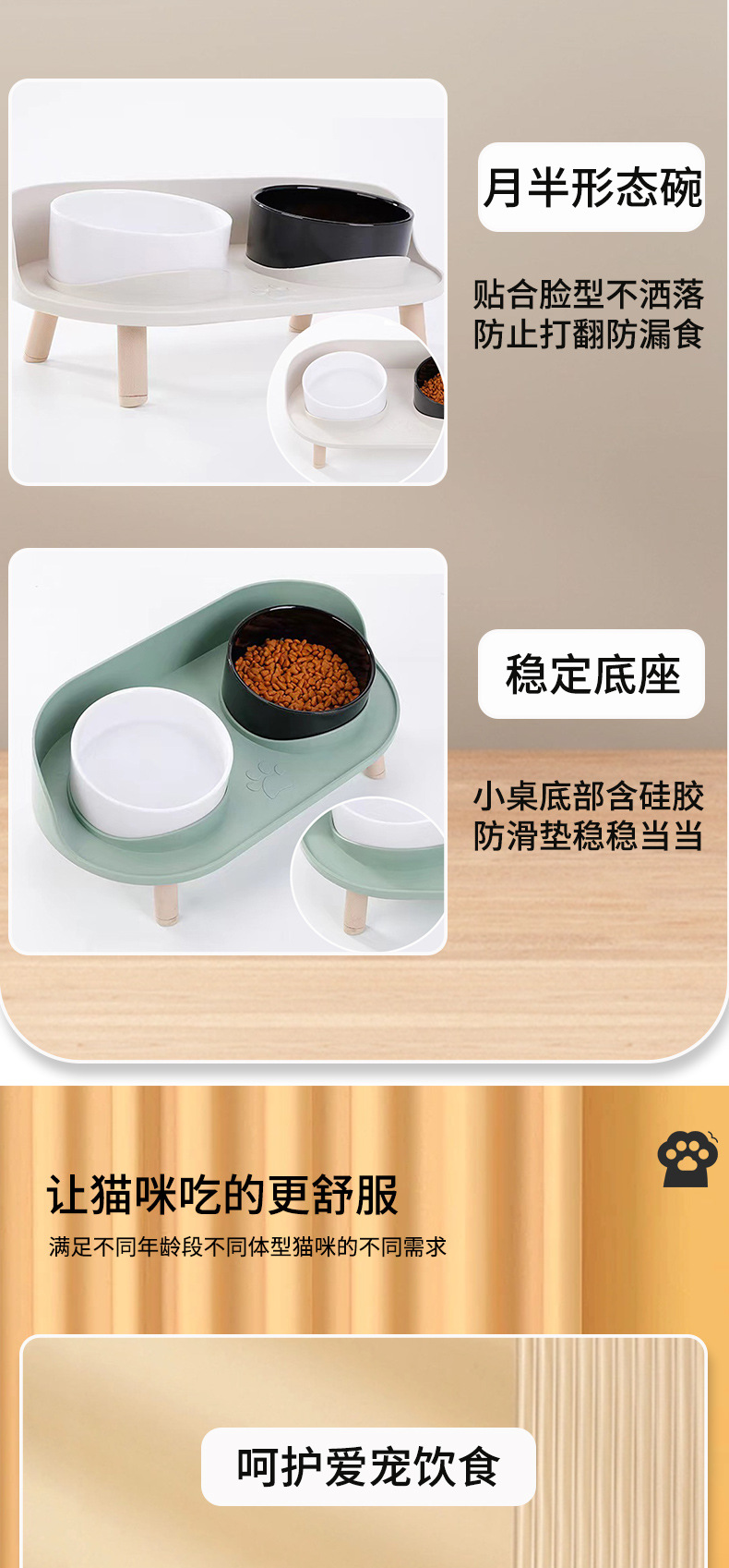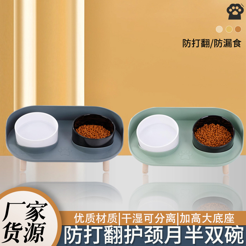고양이 밥그릇 반달형 이중식기 넘어짐 방지 목 보호 고양이 물그릇 강아지 사료 그릇 애완용품 도매 고양이 사료