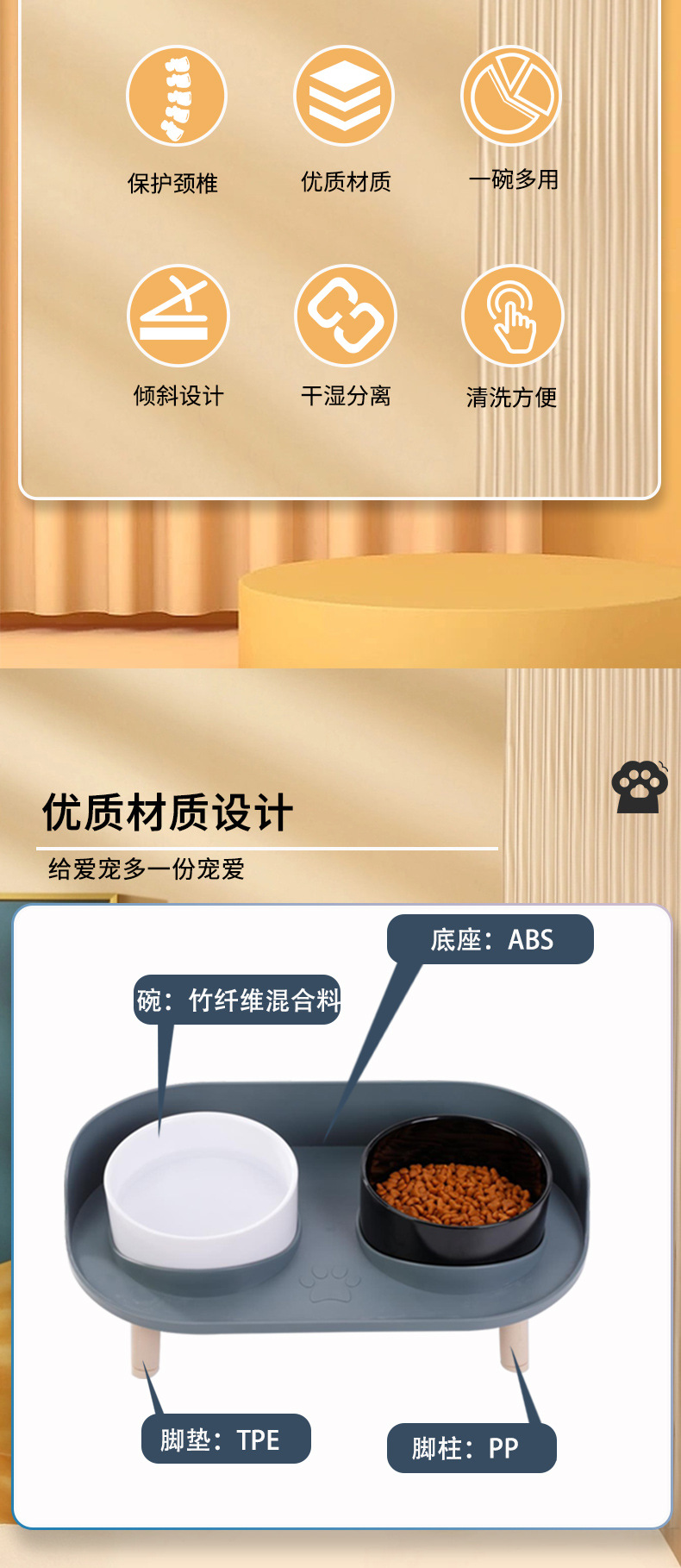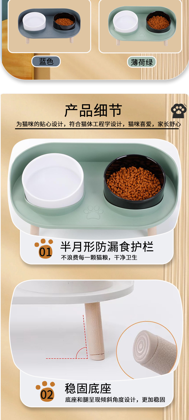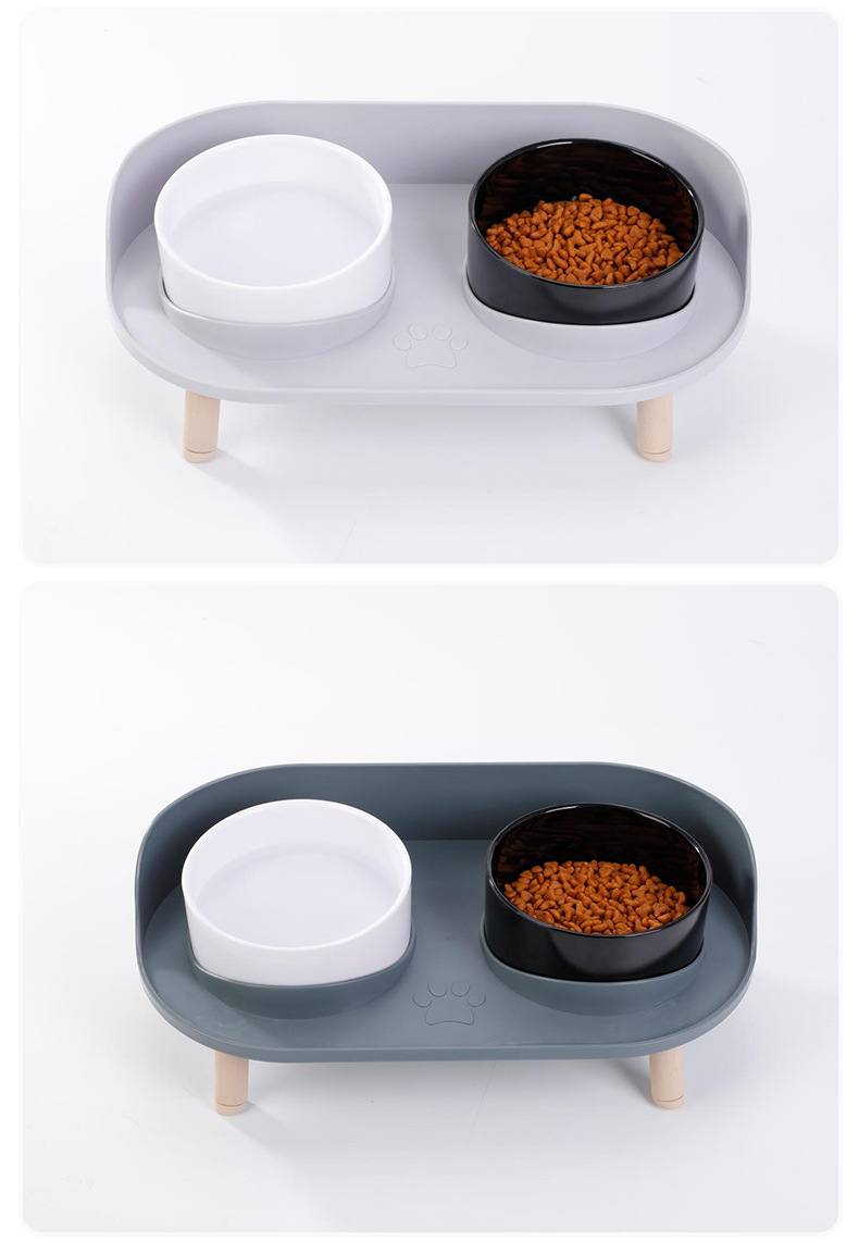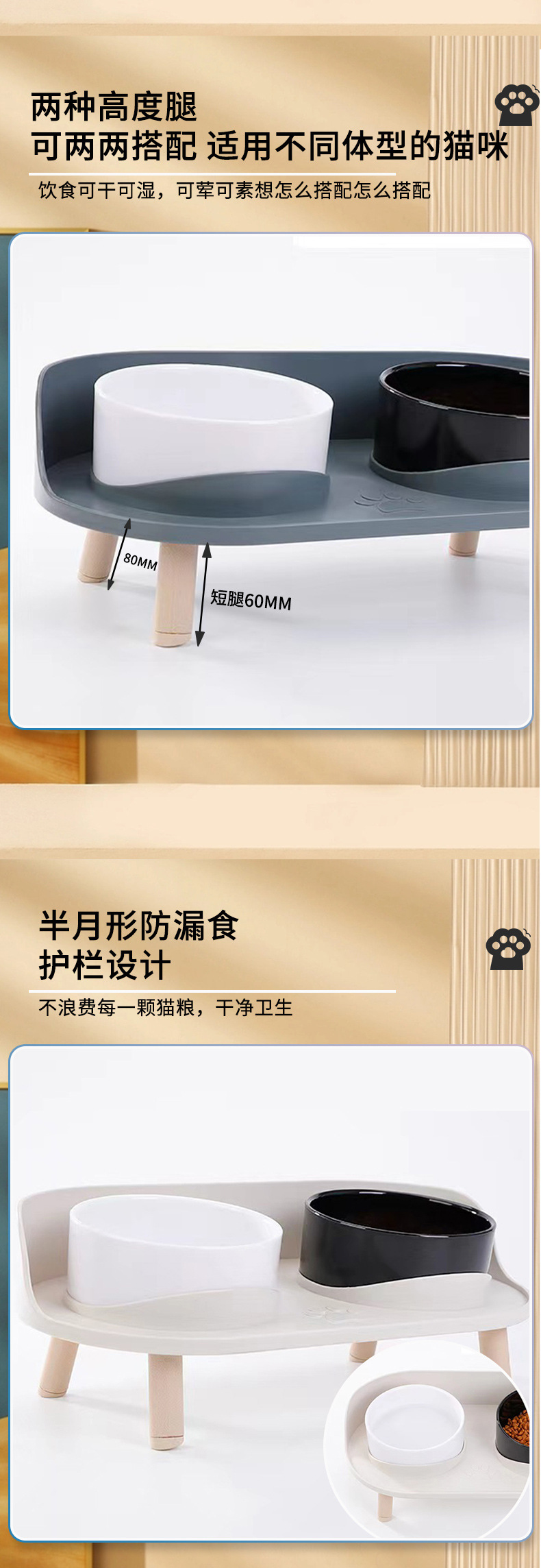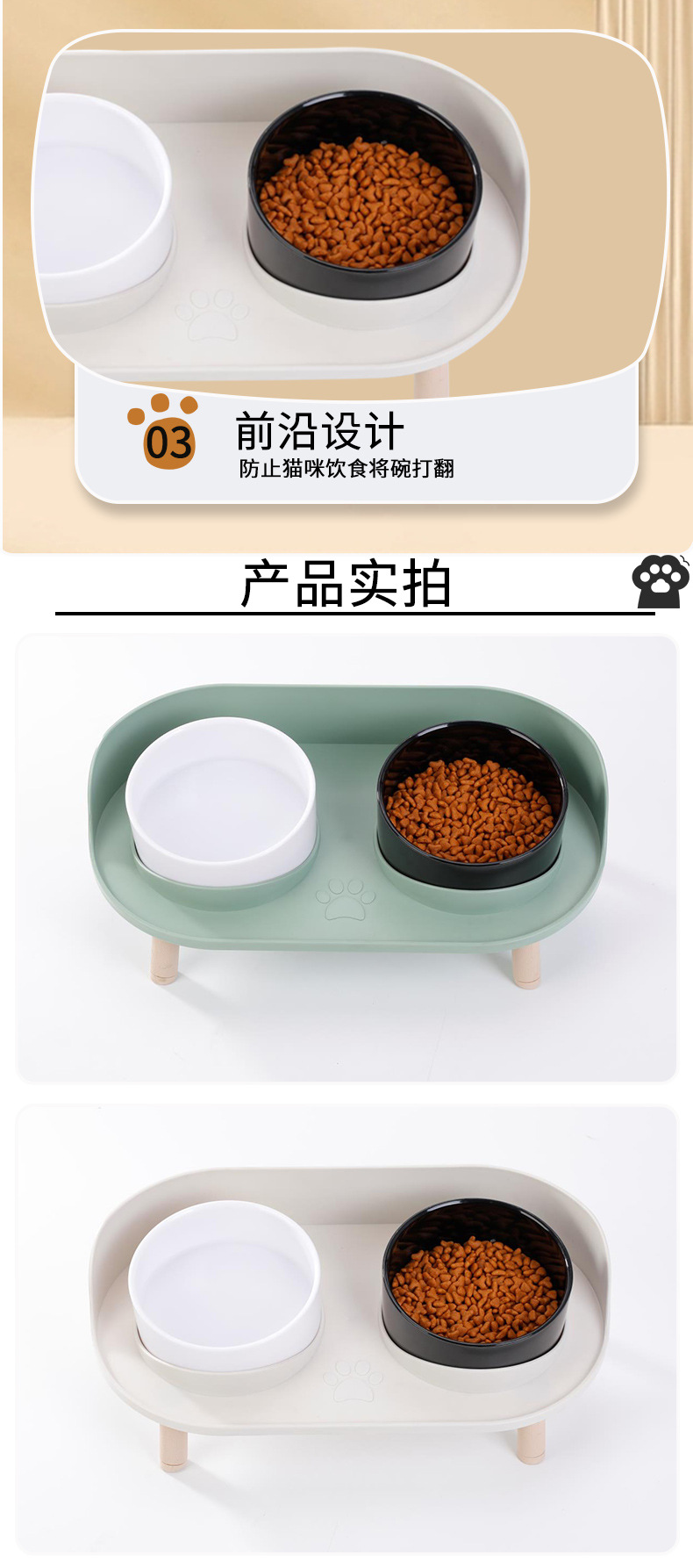 고양이 밥그릇 반달형 이중식기 넘어짐 방지 목 보호 고양이 물그릇 강아지 사료 그릇 애완용품 도매 고양이 사료