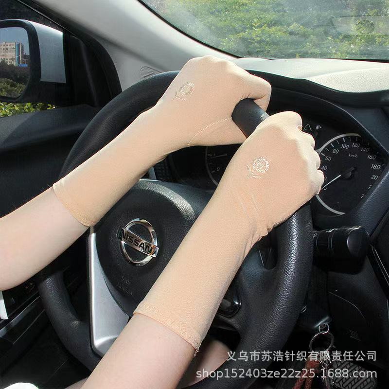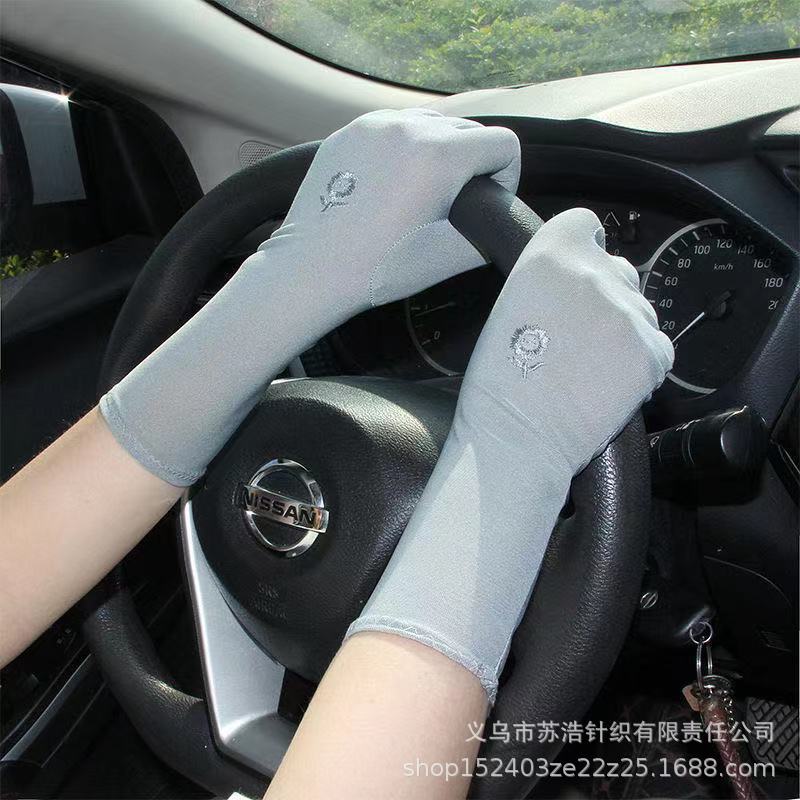 남성과 여성을위한 33cm 여름 선 스크린 장갑 얇은 자수 중형 및 장거리 운전 고탄력 사이클링 에티켓 도매