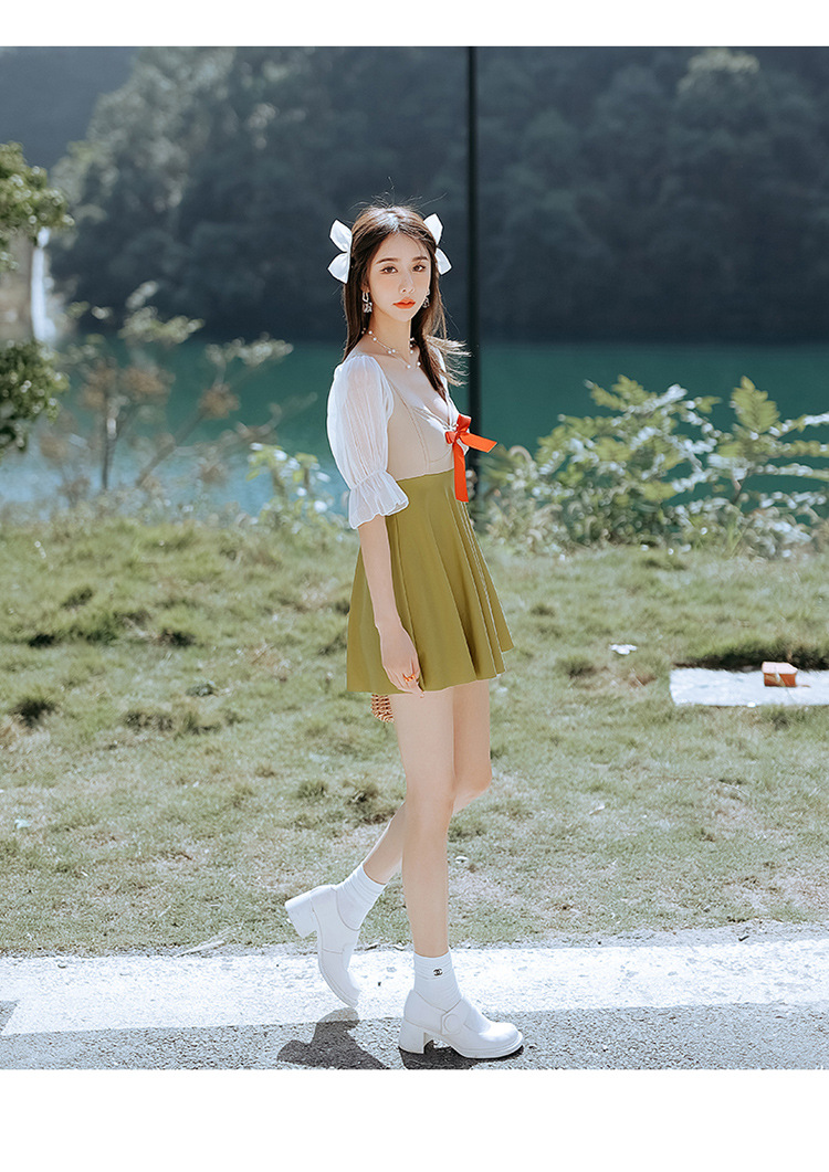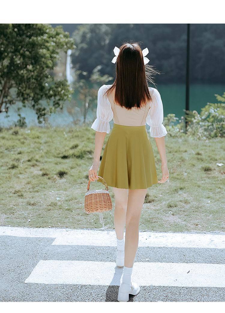 원피스 스커트 귀여운 수영복 여성의 여름 보수적 인 온천 배꼽 슬리밍 작은 가슴 공주 소녀의 플러스 사이즈 학생 수영복