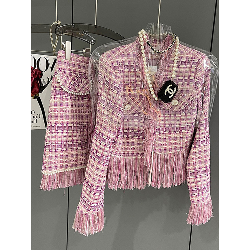 중공예 비즈 장식 스몰 프렌치 스타일 세트 드레스 가을 겨울 신상 여성복 우아한 여신 스타일 명사풍 프린지 투피스 세트스토어 가기
