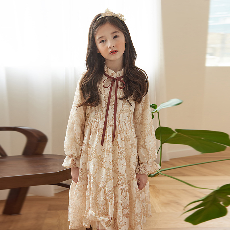 여아 봄 드레스, 큰 어린이를 위한 새로운 스타일, 세련된 여아 한국 스타일 고급 레이스 공주 드레스, 해외 직배송