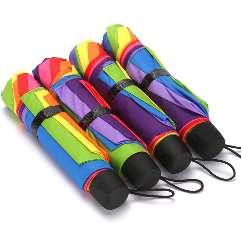 남성과 여성을위한 새로운 3 배 무지개 우산 역 우산 핸드 오픈 8 뼈 접는 우산 인쇄 로고 도매 선물 우산스토어 가기