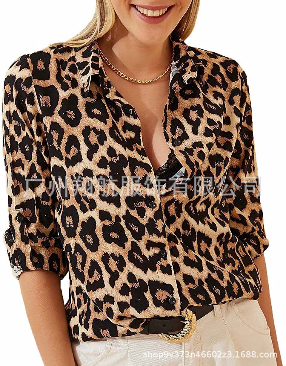 2022 아마존 유럽과 미국 패션 여성 패션, 캐주얼 긴팔 버튼 셔츠 탑