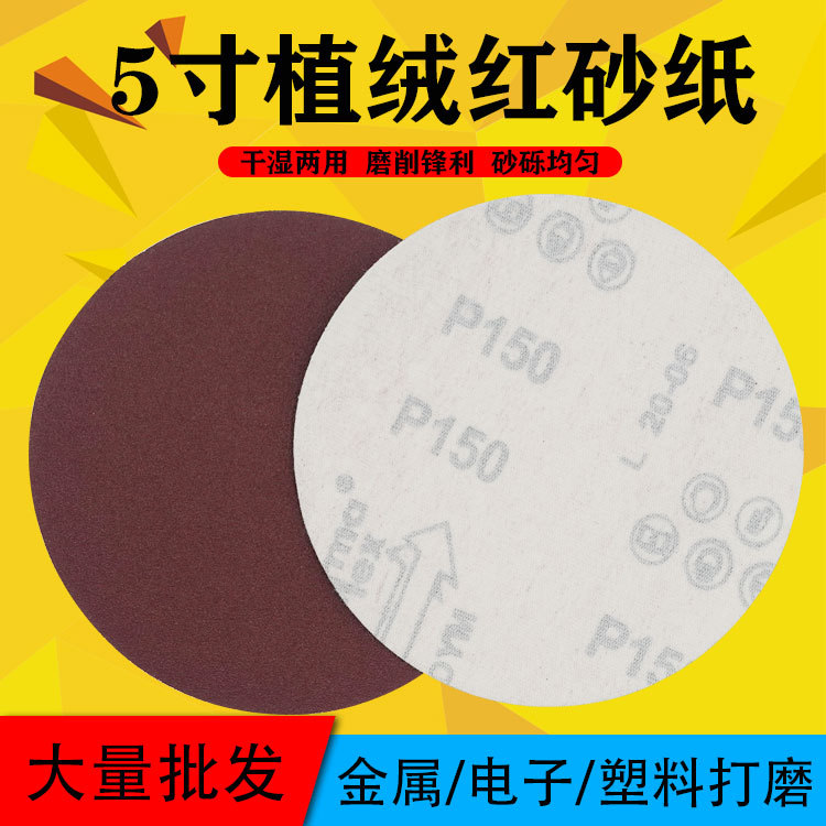 5 인치 디스크 모래 붉은 모래 몰려 드는 모래 라운드 자체 접착 사포 시트 공압 연마 자체 접착 브러시 시트 자동차 연마스토어 가기