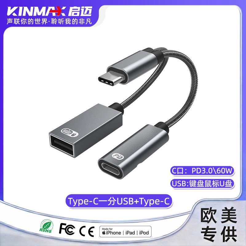 국경을 넘는 2-in-1 다기능 어댑터 60w 고속 충전 타입-C to USB OTG 어댑터 애플 16 호환