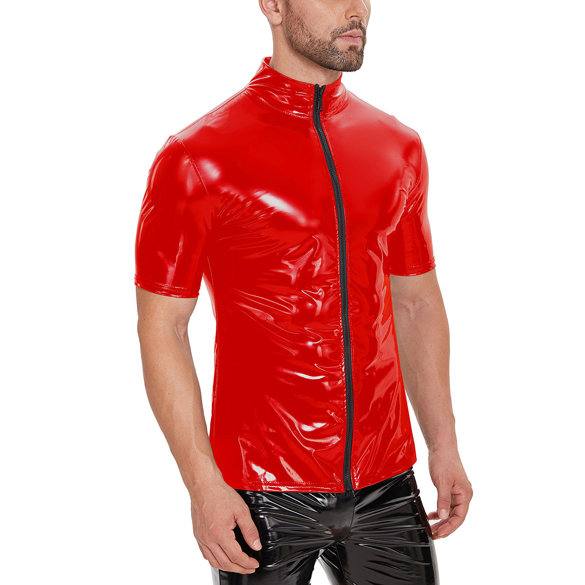 국경 간 제품 유럽과 미국 남성 PVC 하이라이트 특허 가죽 자켓 섹시한 슬림 핏 가죽 자켓 악취 정확한 크기 없음스토어 가기