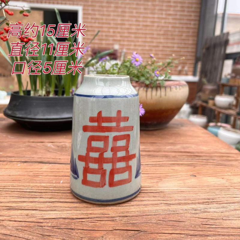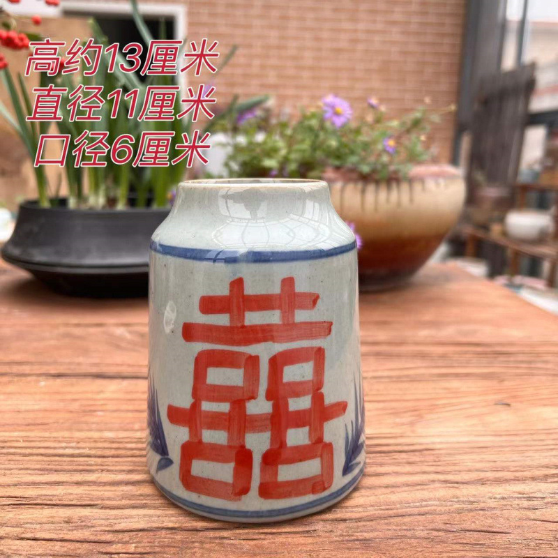 Jingdezhen 세라믹 냄비 꽃병 장식품 빈티지 손으로 그린 파란색과 흰색 빨간색 행복한 캐릭터 꽃 도자기 일본 선 식물 화분스토어 가기