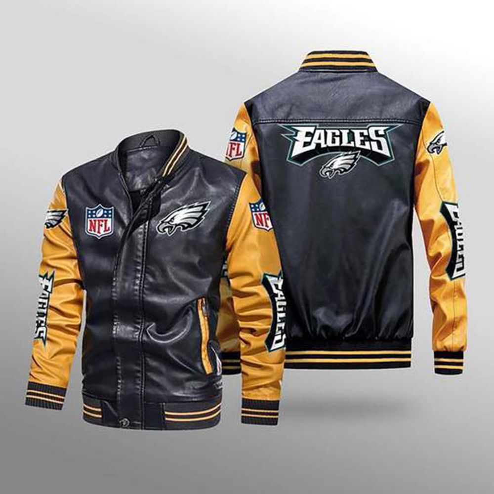 2022 남자의 빈티지 PU 가죽 자켓 프린트 재킷 필라델피아 독수리 선물 느슨한 독특한 가죽 자켓