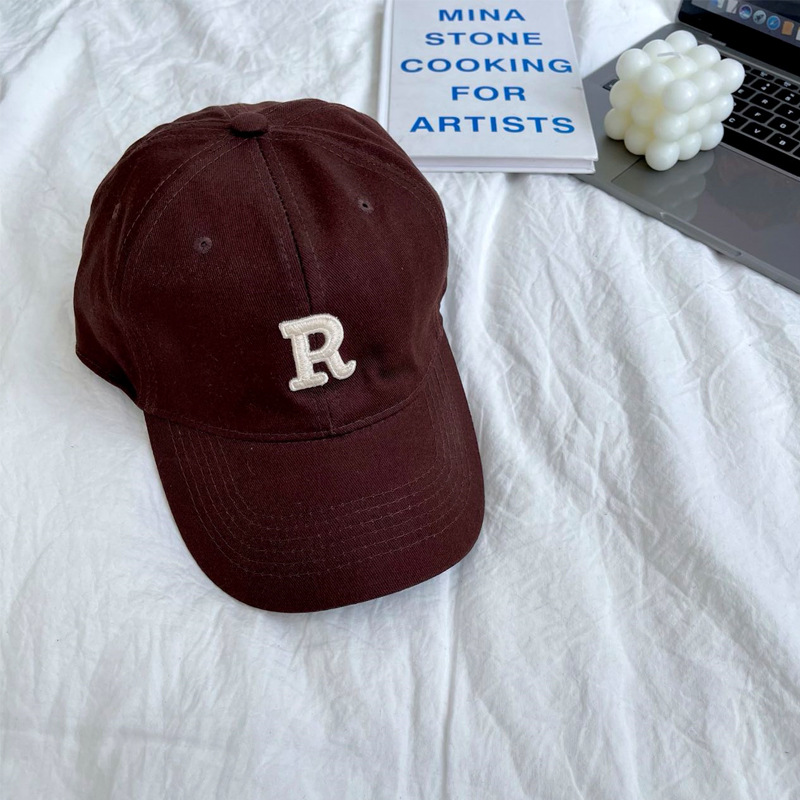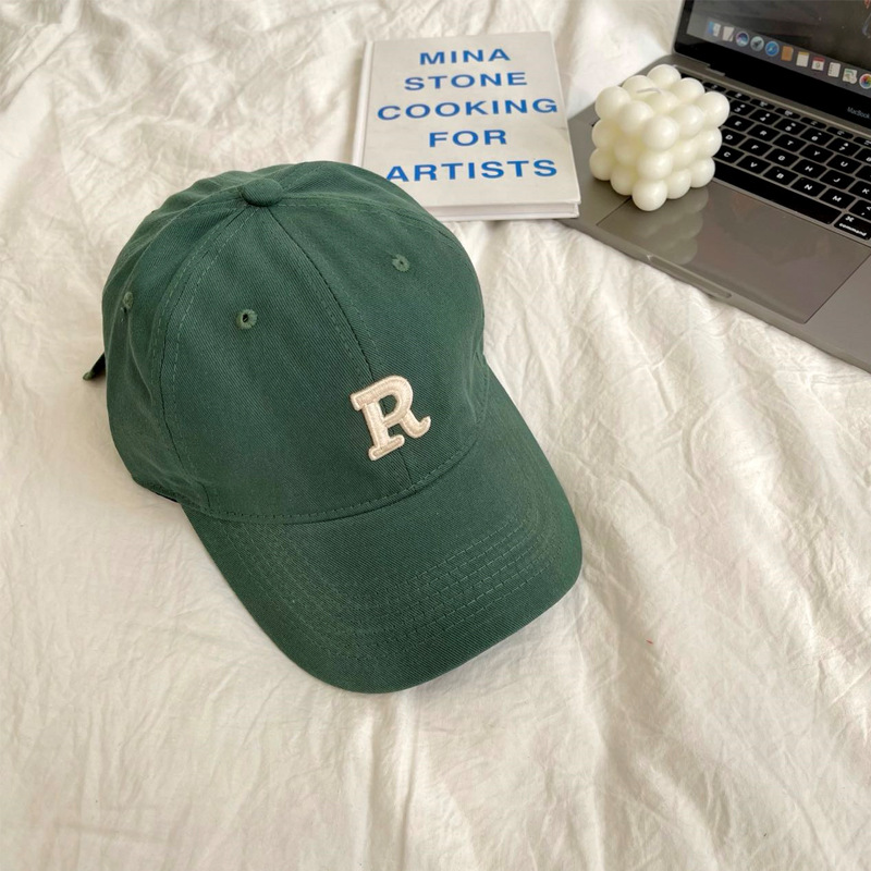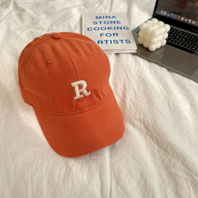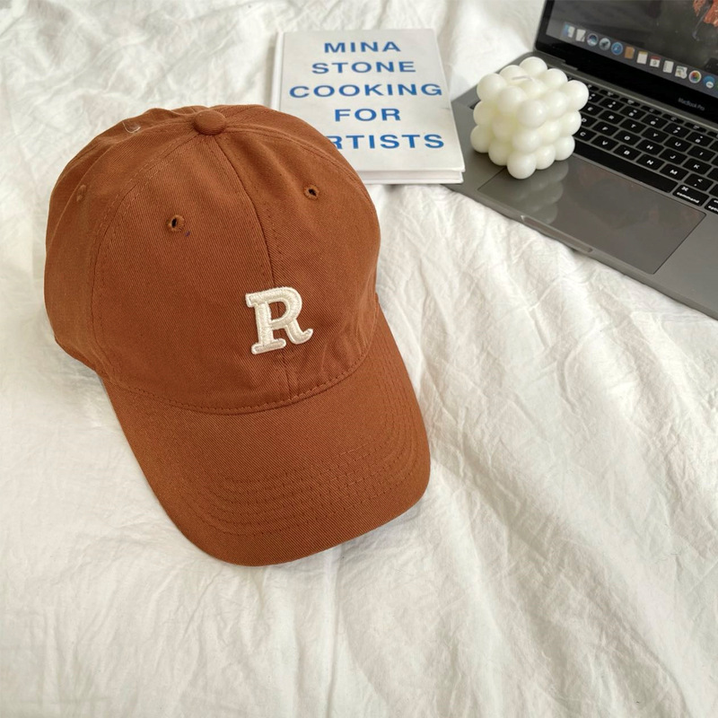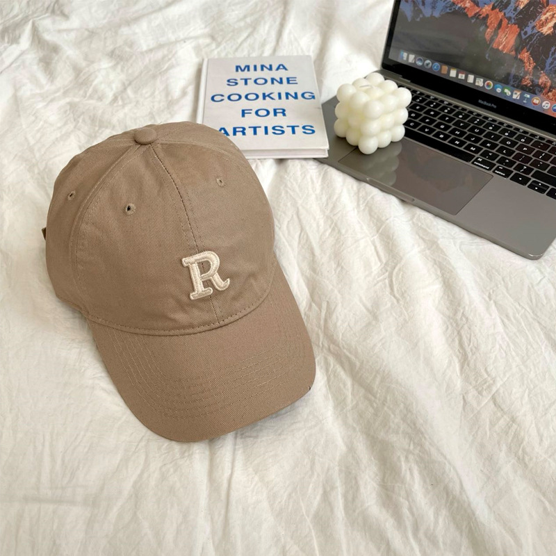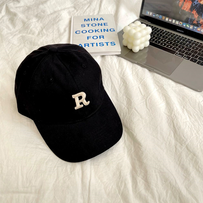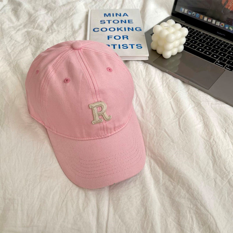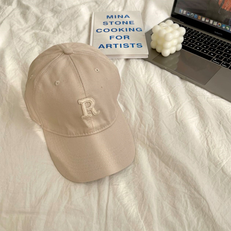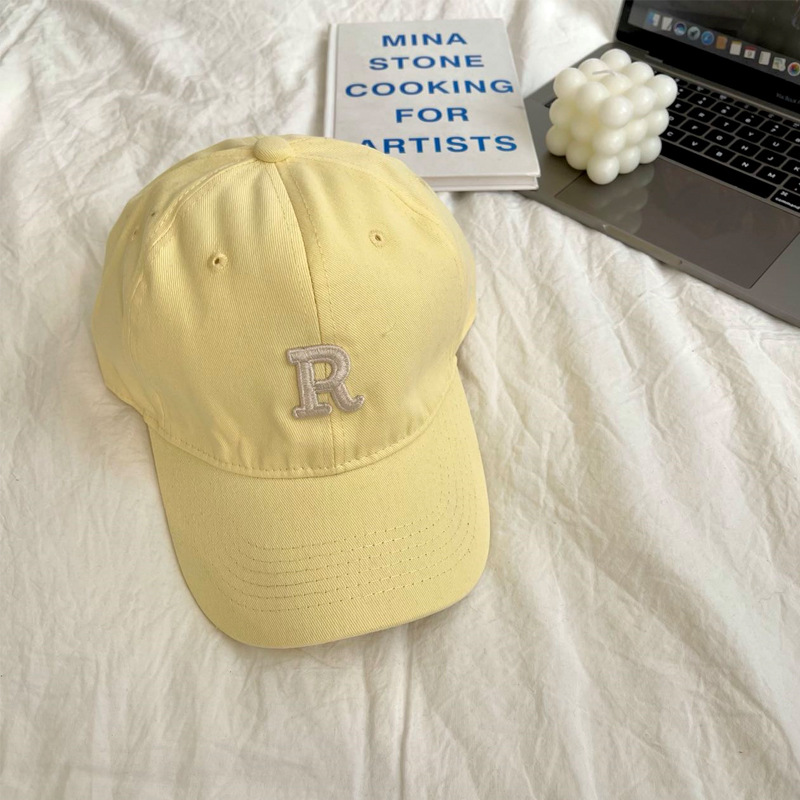 단색 모자 여성용 R 레터 자수 소프트 탑 야구 모자 남여 공용 한국 스타일 심플 올 매치 캡스토어 가기
