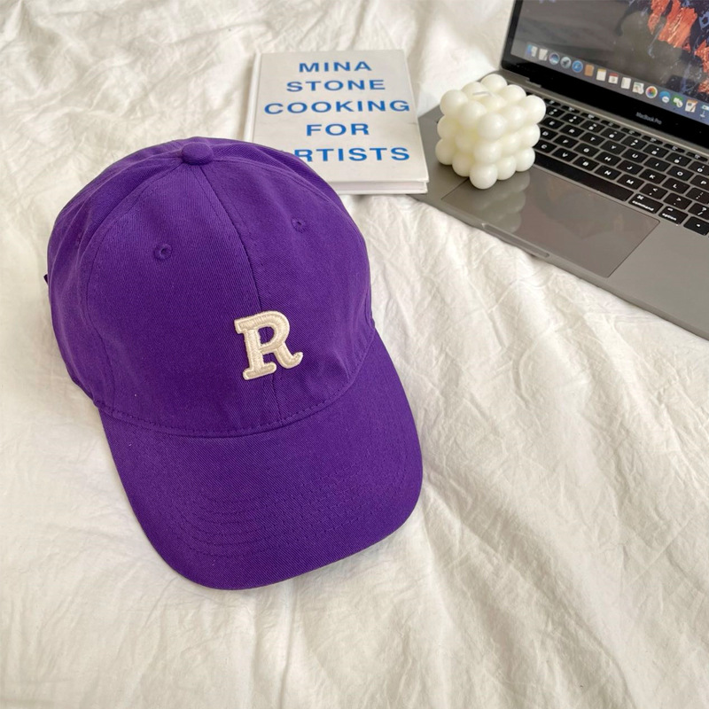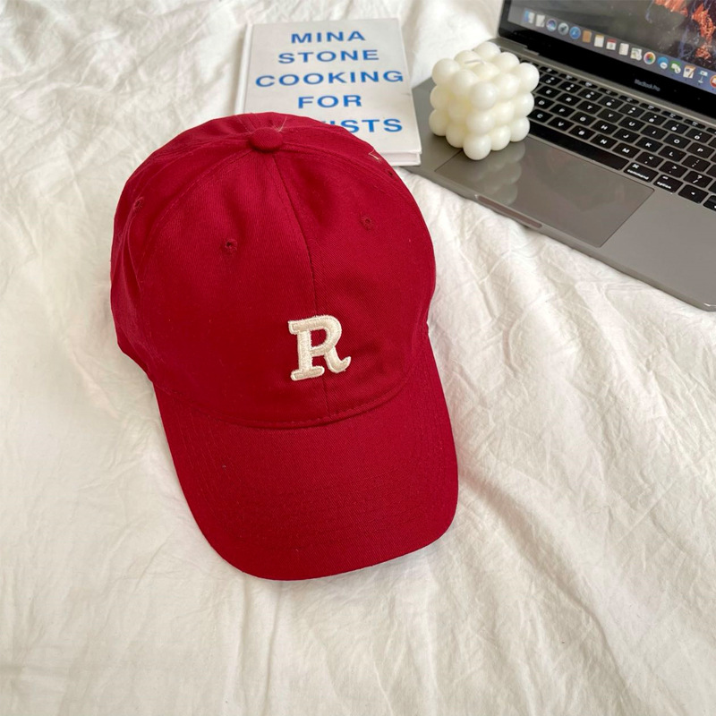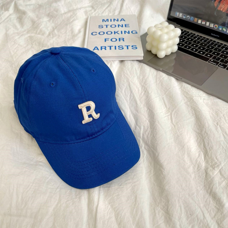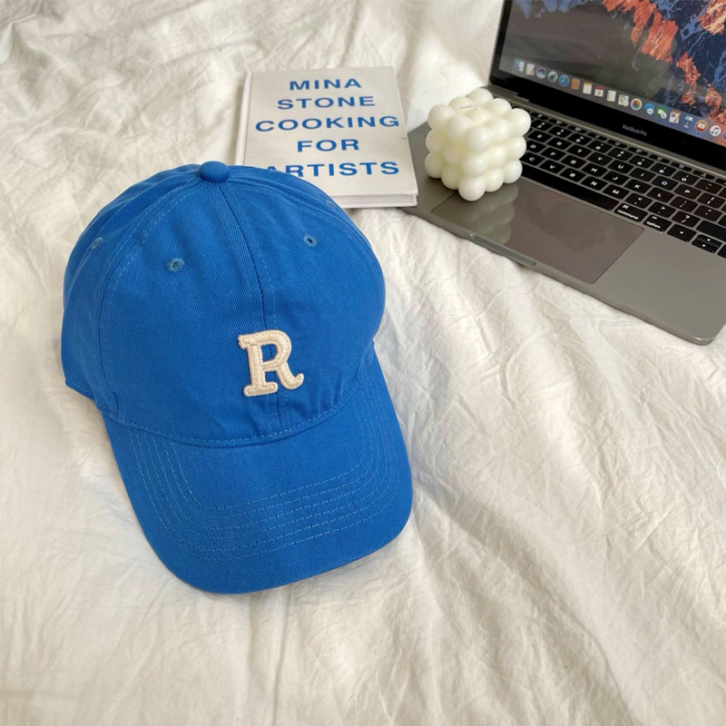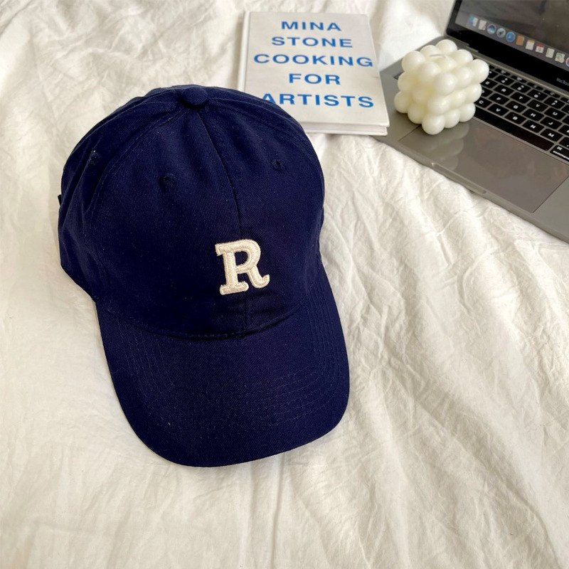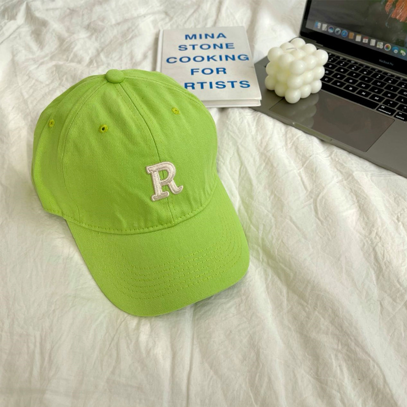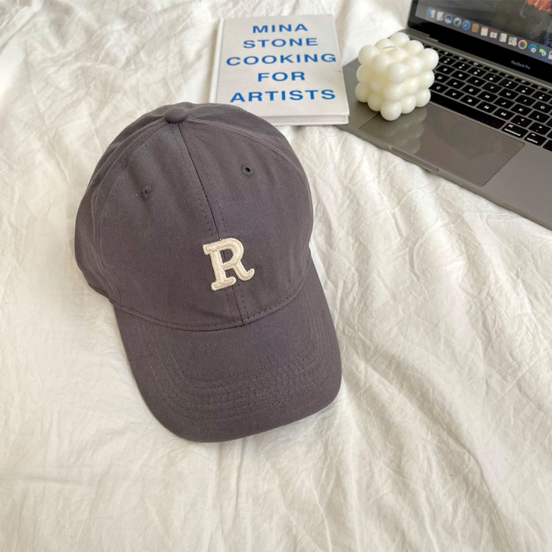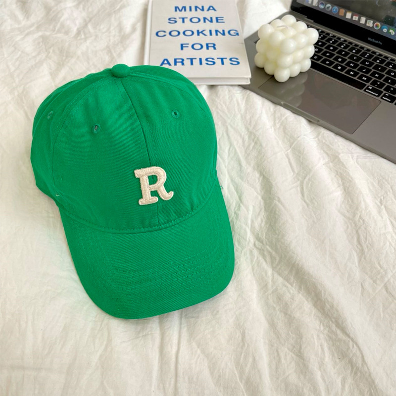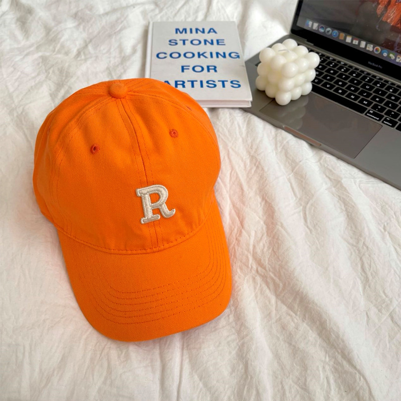 단색 모자 여성용 R 레터 자수 소프트 탑 야구 모자 남여 공용 한국 스타일 심플 올 매치 캡스토어 가기