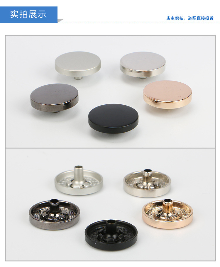 소스 제조업체 스트레이트 헤어 15mm 아연 합금 배럴 도금 교수형 도금 스프레이 페인트 서브 컬러 합금 패널 라운드 스냅 버튼스토어 가기