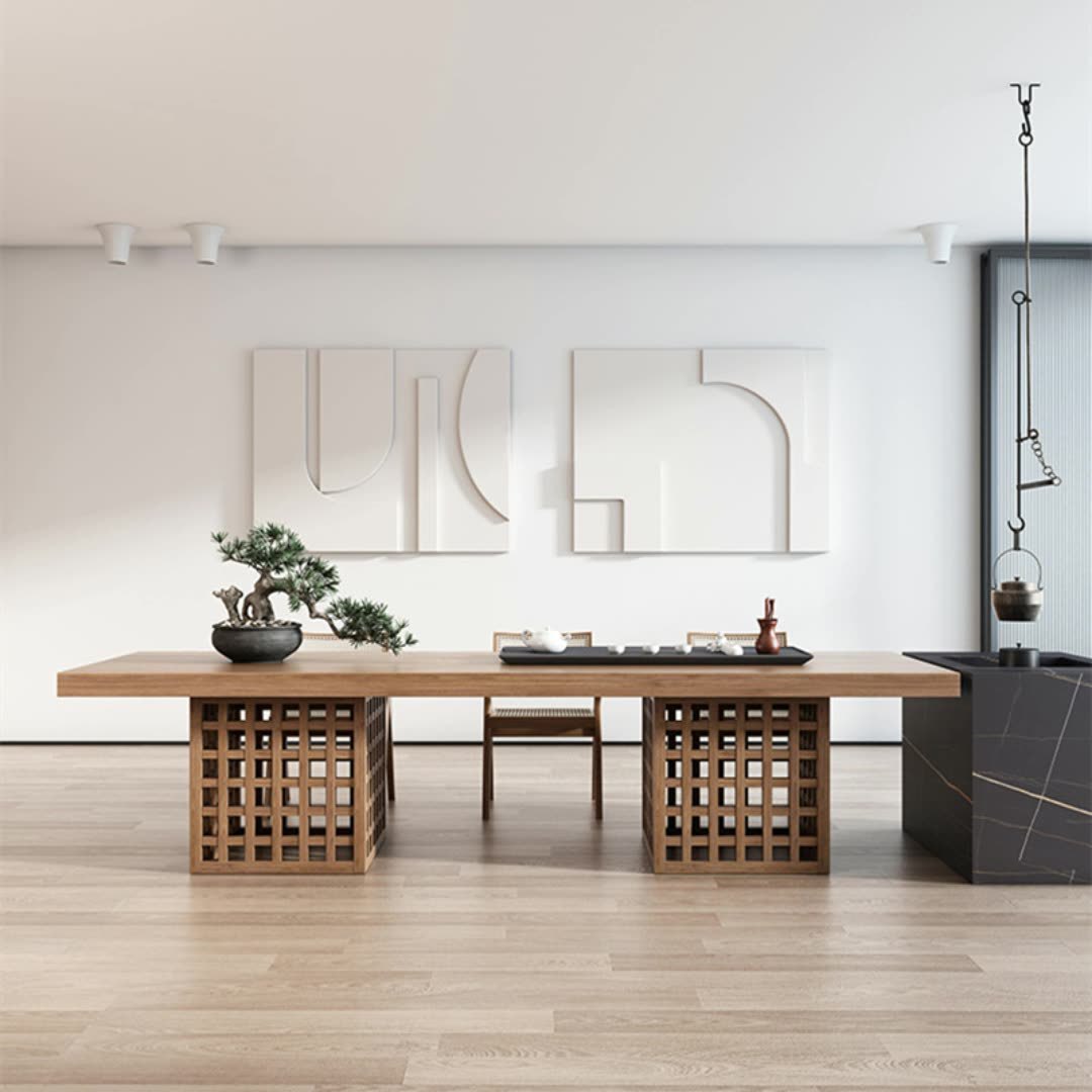 새로운 중국 스타일 티 테이블과 의자 조합 단단한 나무 대형 보드 테이블 홈 티 테이블 티 룸 가구 나무 조용한 스타일 티 테이블
