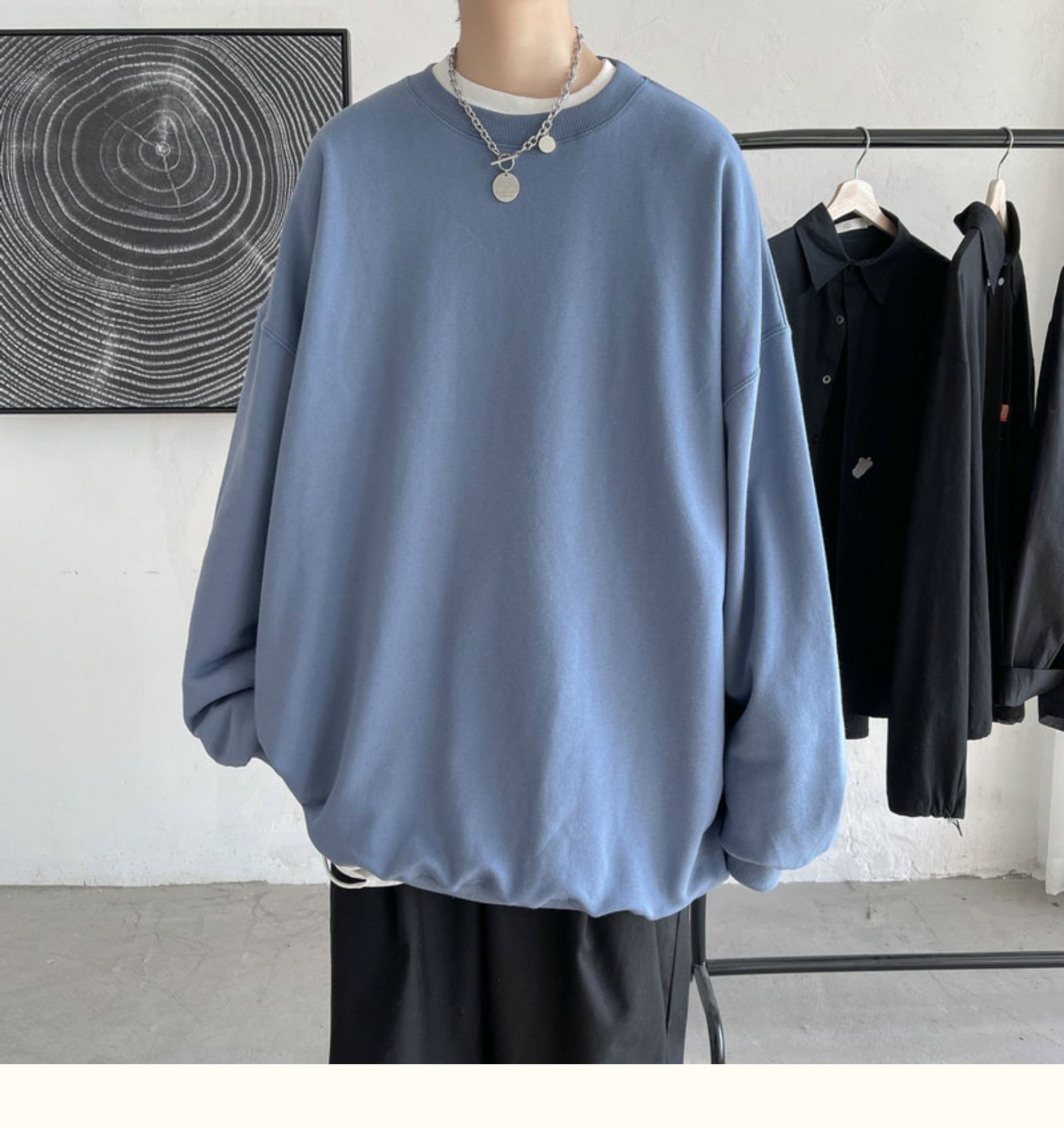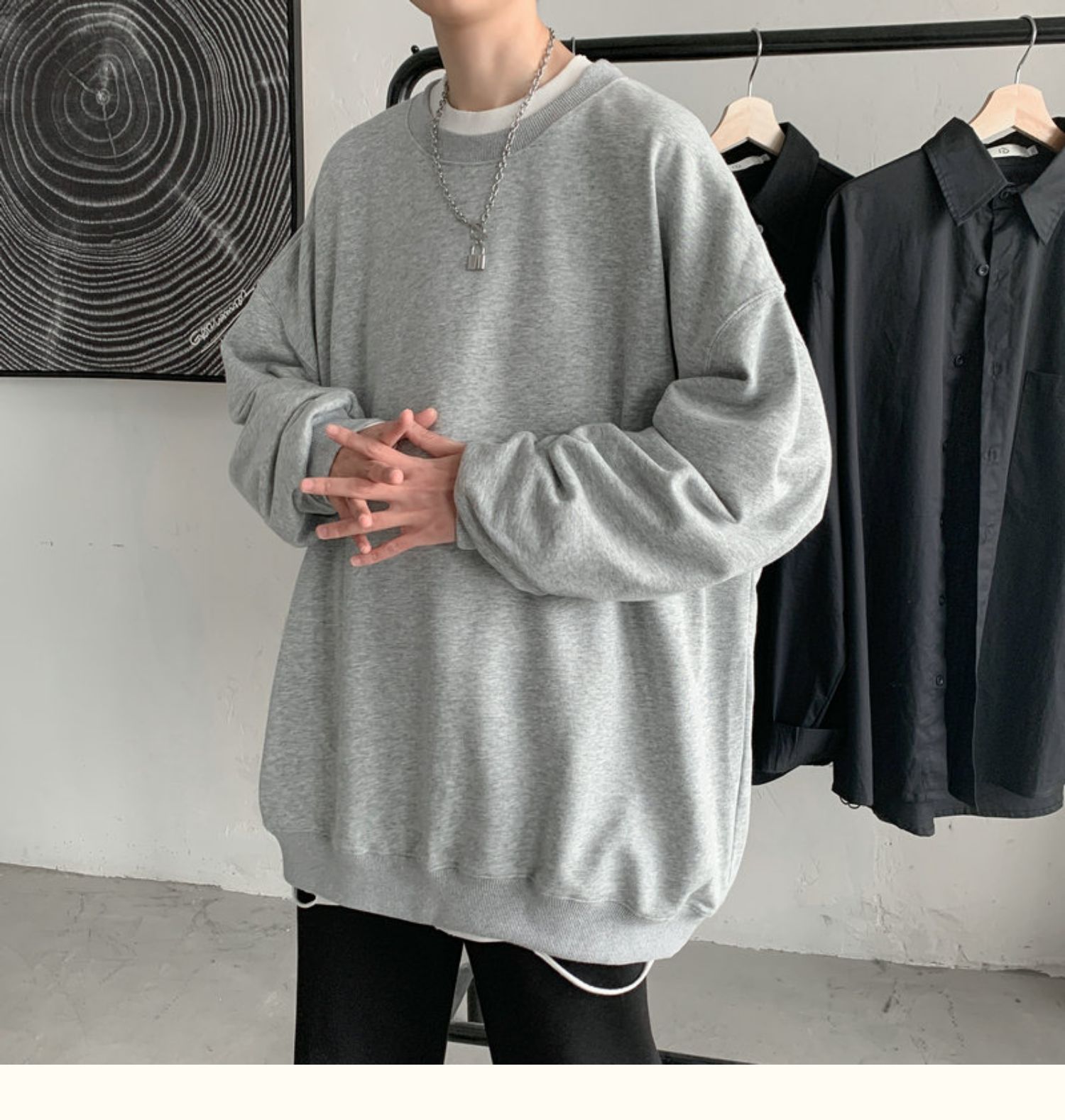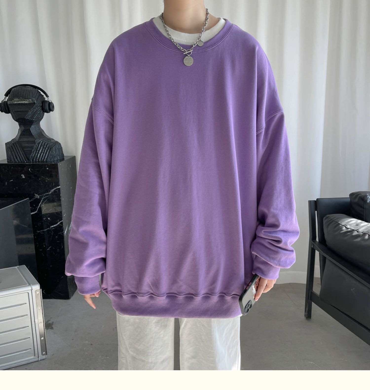 2021 가을 라운드 넥 긴팔 티셔츠 남성용 솔리드 컬러 내부 레이어링 셔츠 탑 커플 핑크 후드리스 봄 운동복스토어 가기