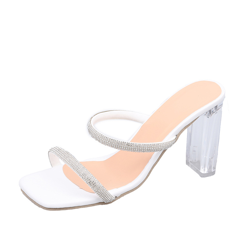 플러스 사이즈 라인 석 샌들 여자의 새로운 섹시한 두꺼운 굽 하이힐 유행 크리스탈 슬리퍼 스몰 사이즈 크기 43