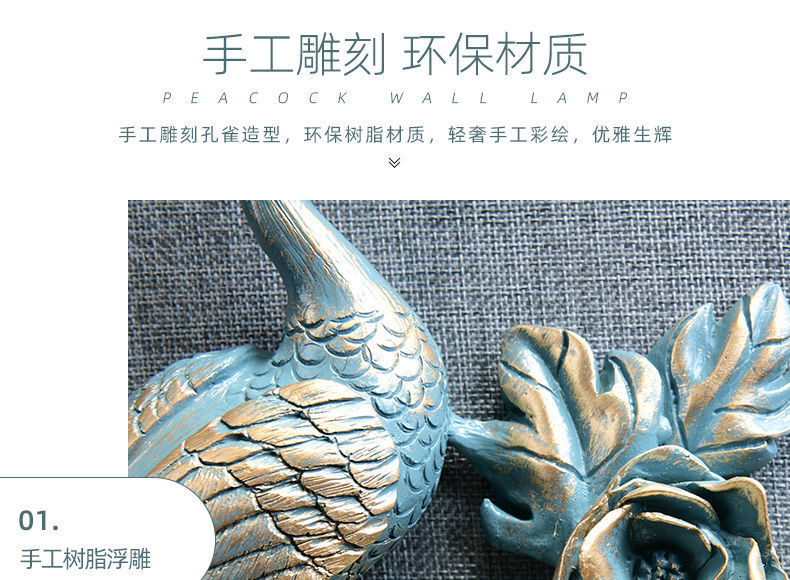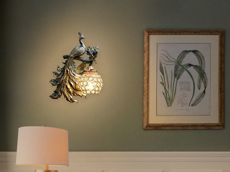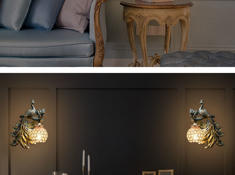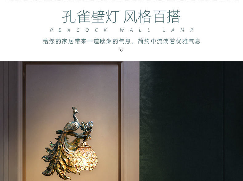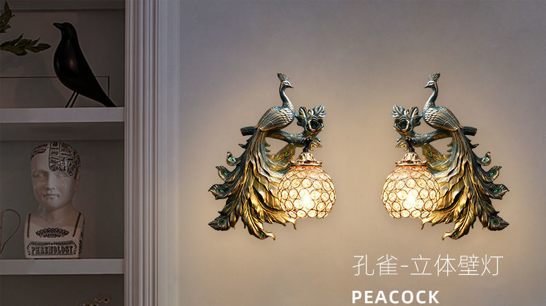 미국 복고풍 공작 벽 램프 유럽 거실 침실 침대 옆 배경 벽 창조적 인 장식 벽 램프