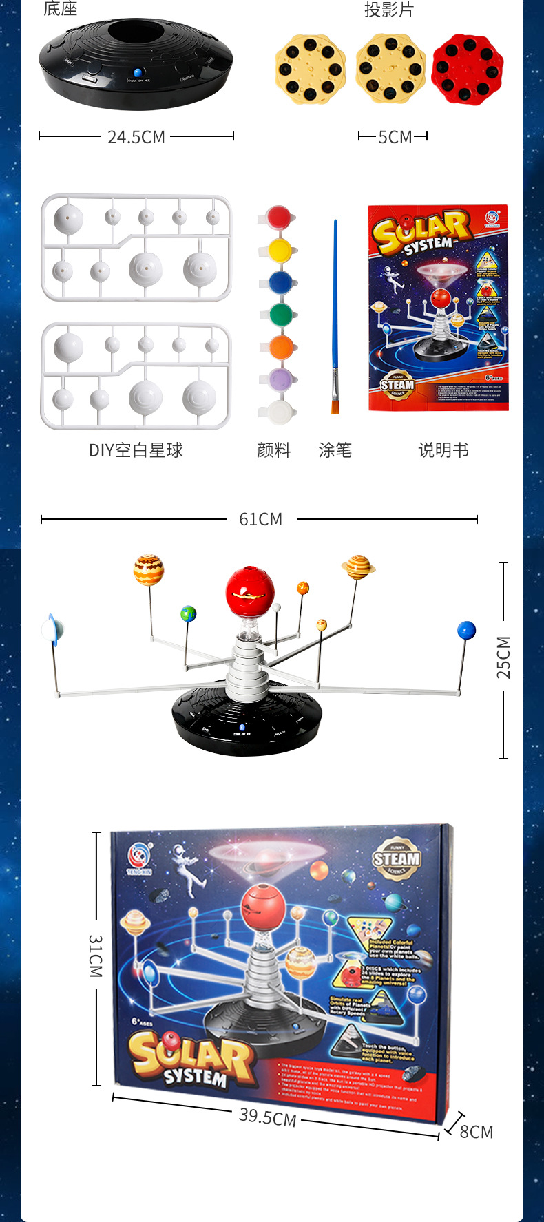 태양계 8 개 행성 모델 3D 프로젝션 전기 장난감 어린이 조기 교육 교육 학습 과학 DIY 교육 보조