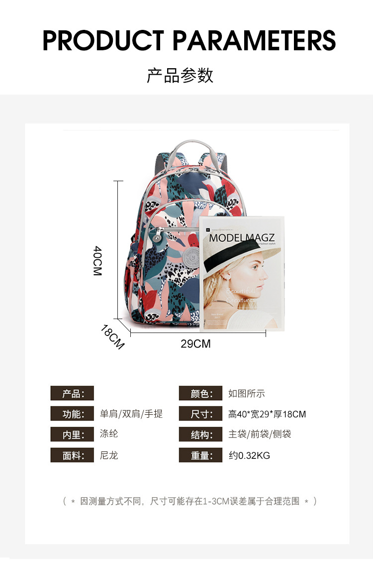 대용량 발수성 나일론 여성 가방 유행 캐주얼 휴대용 소형 배낭 유행 여성 여행 야외 배낭