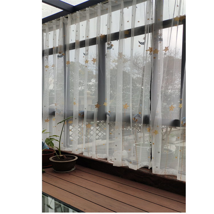 현대적이고 심플한 거실 발코니 침실 창문 커튼 별과 달 창문 커튼 공주 방 어린이 방 로맨틱 창문 커튼