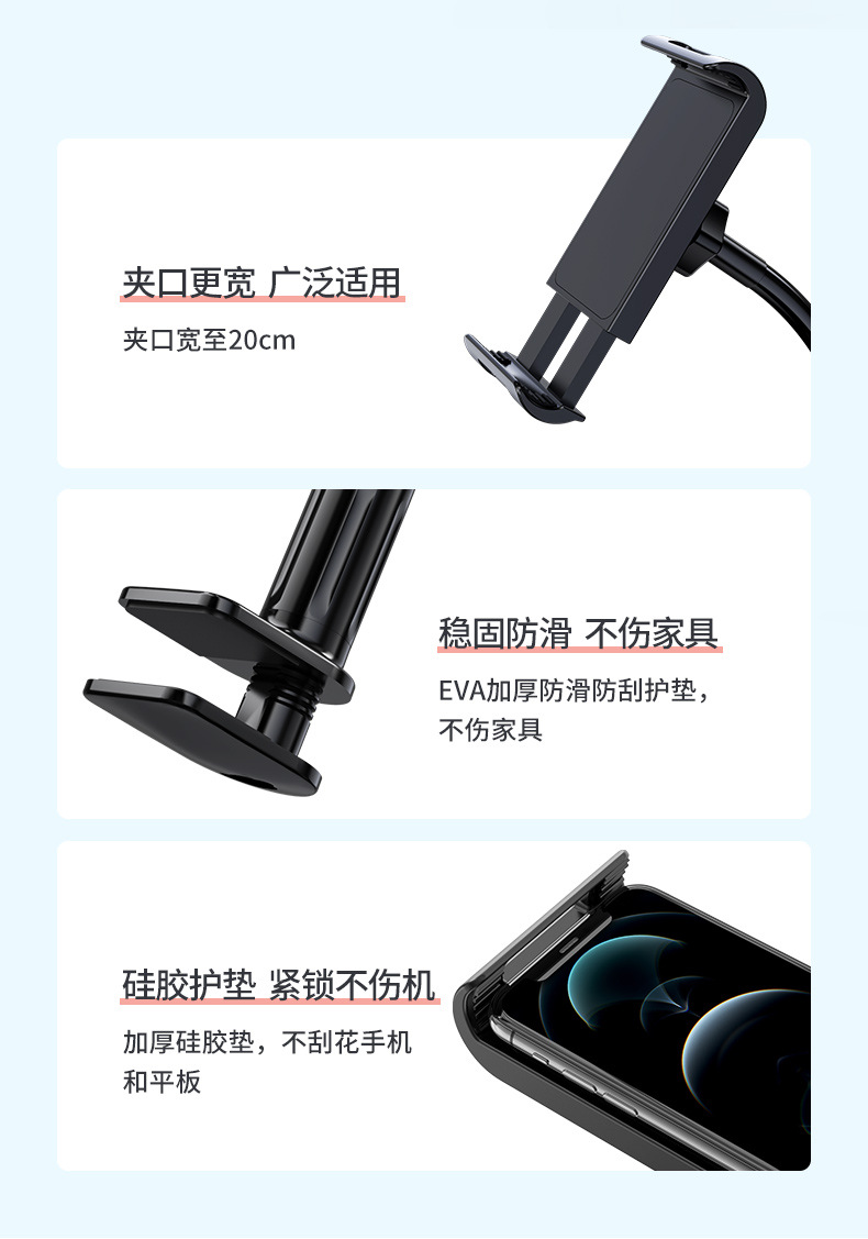 도매 게으른 휴대 전화 태블릿 스탠드 나선형베이스 클립 침대 데스크탑 비디오 시청 오버 헤드 샷 지원 스탠드스토어 가기