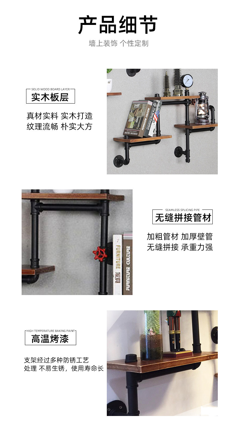 미국식 수도관 철제 원목 벽 선반 거실 레트로 일자형 선반 수납 선반 인더스트리얼 스타일 벽 장식 선반스토어 가기