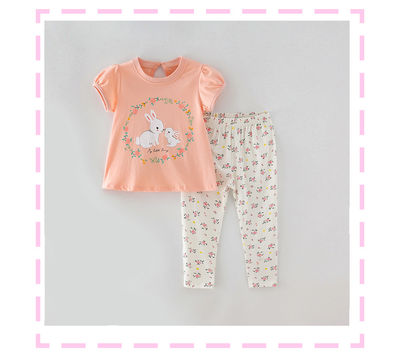 Malwee 아동 반팔 티셔츠 세트 유럽과 미국 소녀 아동복 여름 아기 반 소매 바지 서양 스타일 2 피스 도매스토어 가기