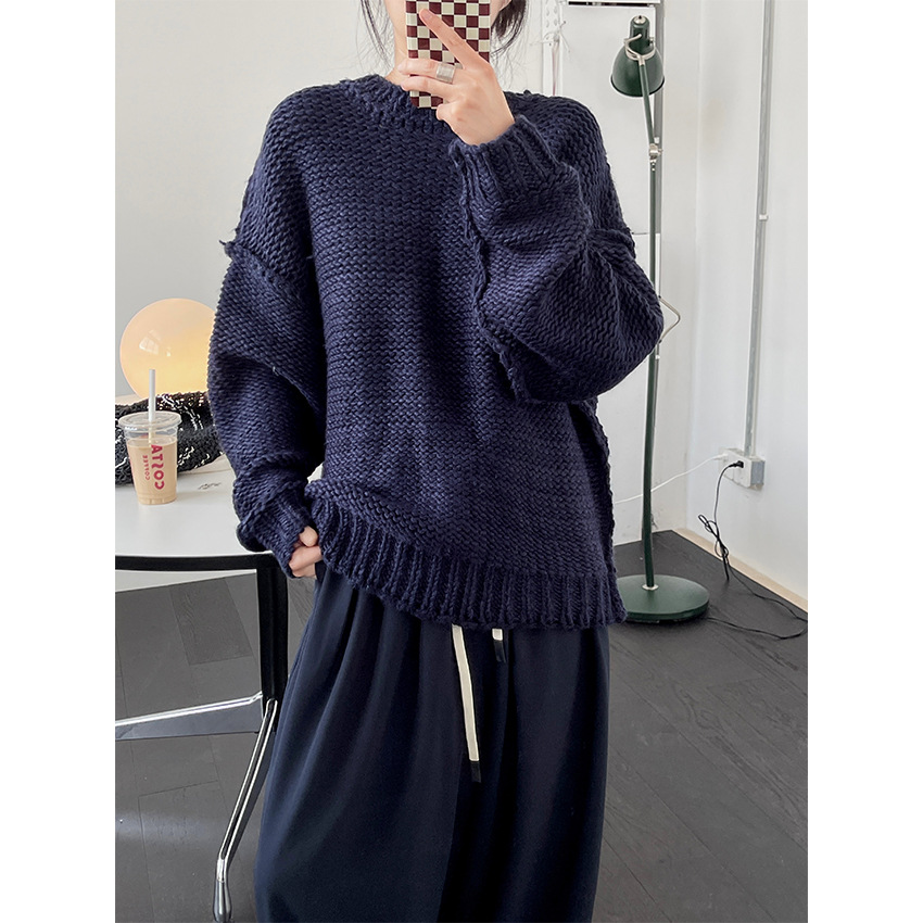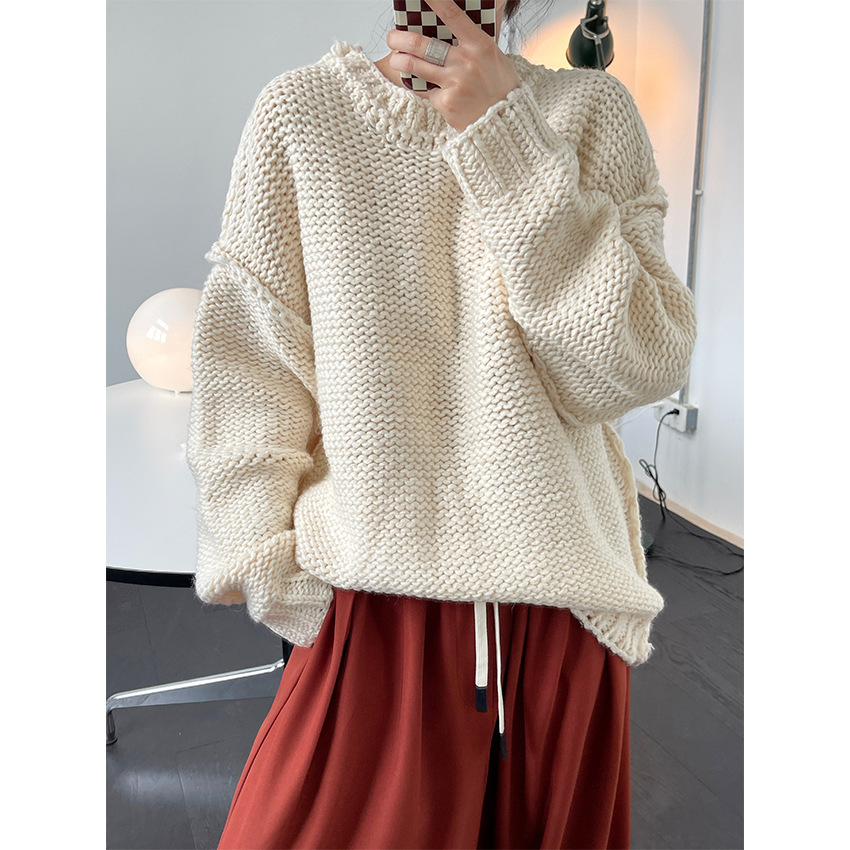 "개인" 가을과 겨울 새로운 한국 두꺼운 원사 편안한 라운드 넥 스웨터 느슨한 프로필 두꺼운 여성의 탑스토어 가기
