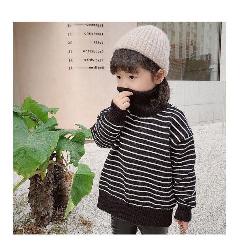 어린이 스웨터 스트라이프 터틀넥 느슨한 가을과 겨울 패션 소년과 소녀 두꺼운 겨울 옷 아기베이스 스웨터스토어 가기