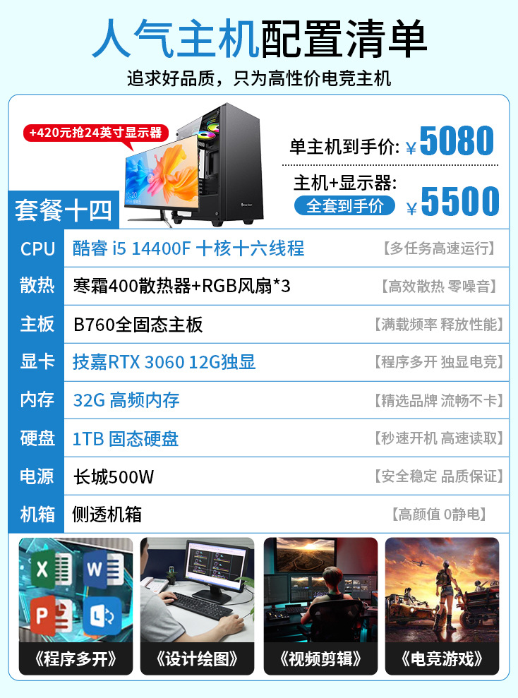 12G 독립 디스플레이 i3i5i7 인터넷 카페 e-스포츠 게임 데스크탑 컴퓨터 호스트 디자인 라이브 방송 조립 컴퓨터 전체 배치